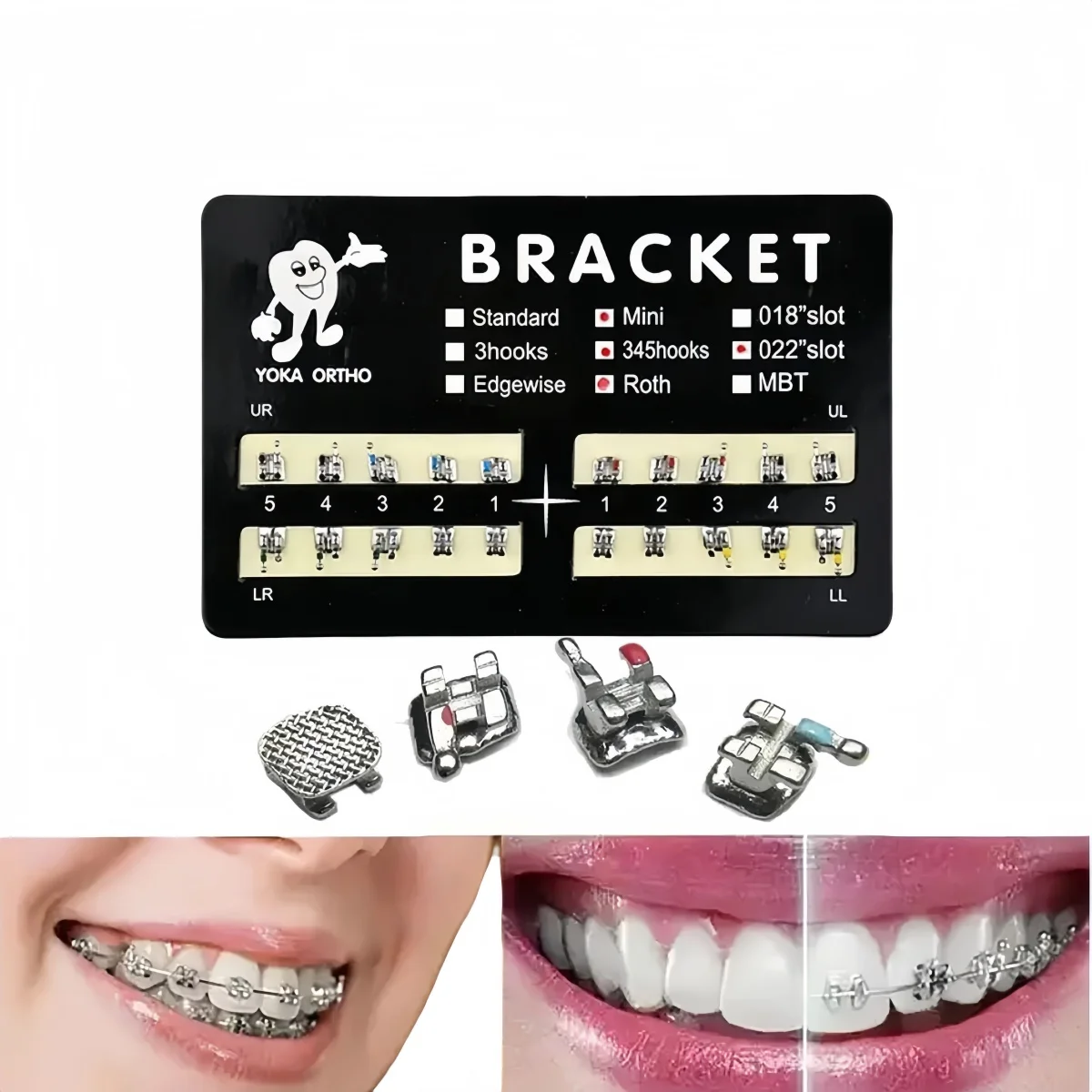 1 pacote de suportes dentais ortodônticos metal monobloco mini roth mbt 022 345 gancho aço inoxidável baixa fricção tratamento dos dentes - TopDealBox