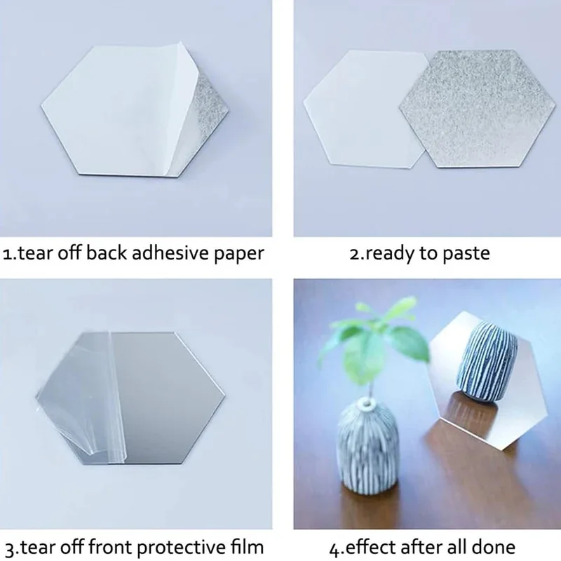 Adesivos de Espelho Hexagonais 3D DIY em Acrílico, 6/12 Peças, Decoração Removível para Sala de Estar e Banheiro - TopDealBox