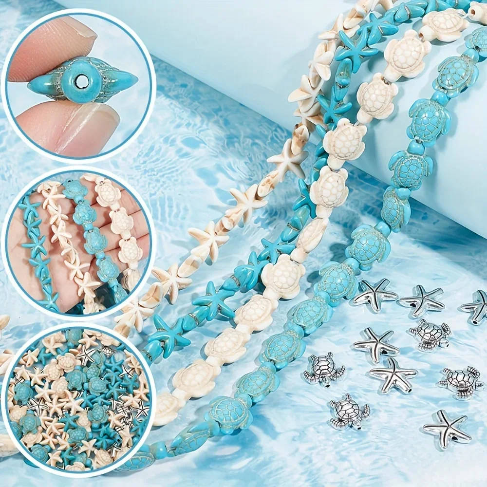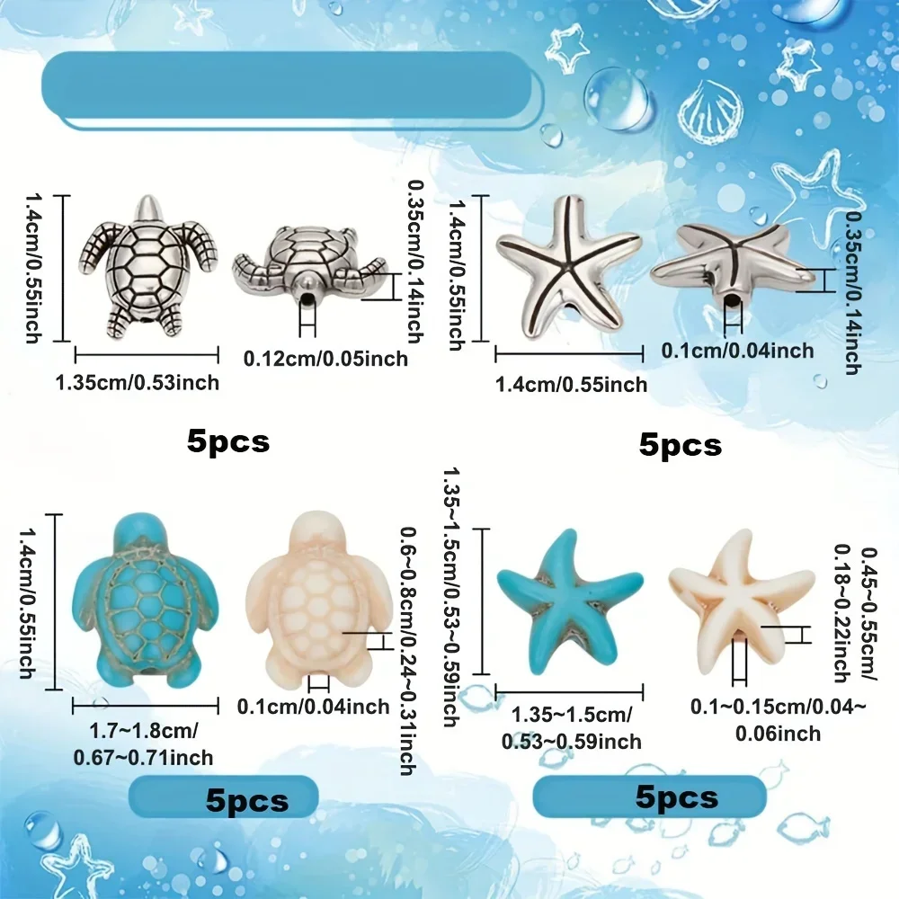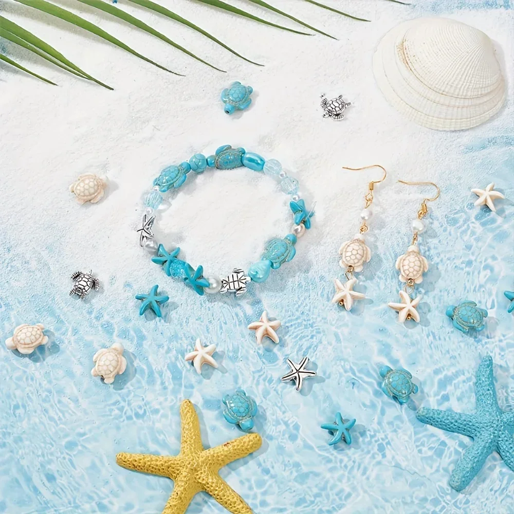 20/40 pçs adorável oceano temático tartaruga estrela do mar turquesa contas para diy jóias fazendo festas de férias de verão presentes acessórios - TopDealBox