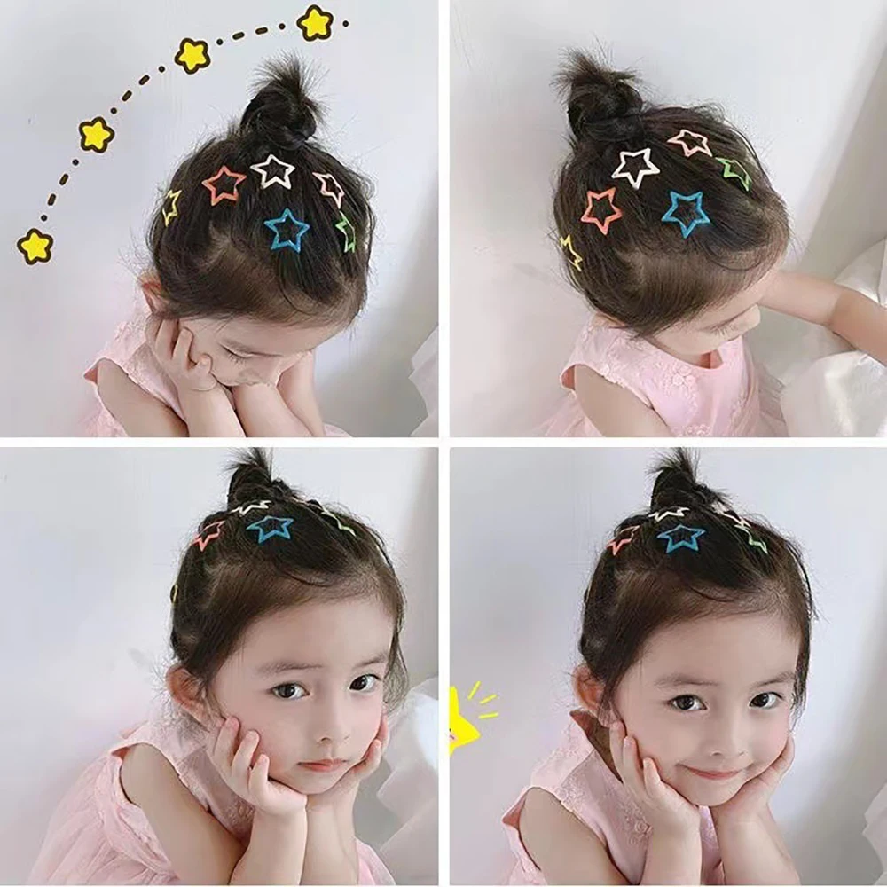 Grampos de cabelo coloridos estrela bb para meninas crianças adorável cabelo decorar grampos presilhas headwear crianças acessórios para o cabelo - TopDealBox