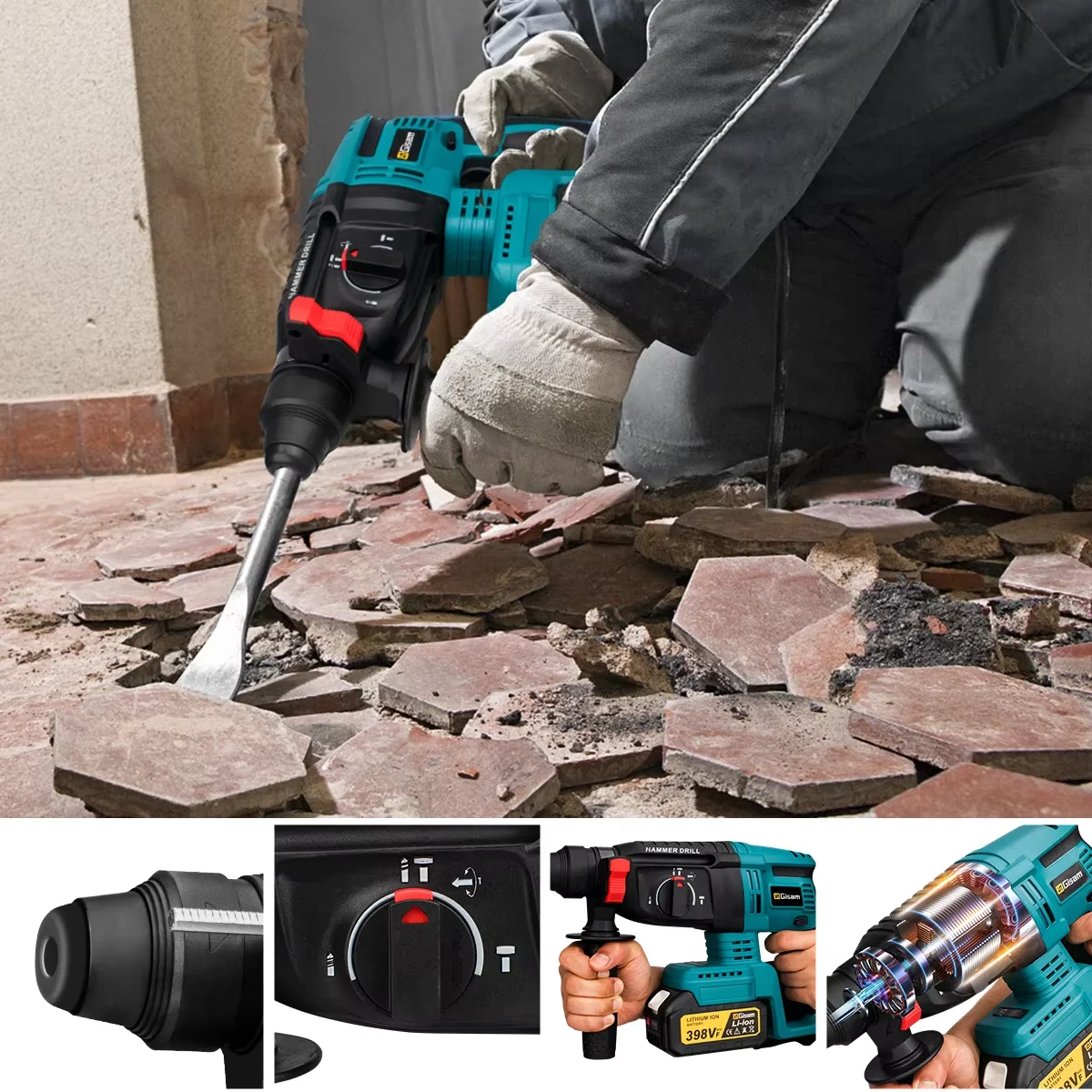 26mm sem escova martelo elétrico broca multifuncional martelo rotativo sem fio ferramentas elétricas para makita 18v bateria pino - TopDealBox