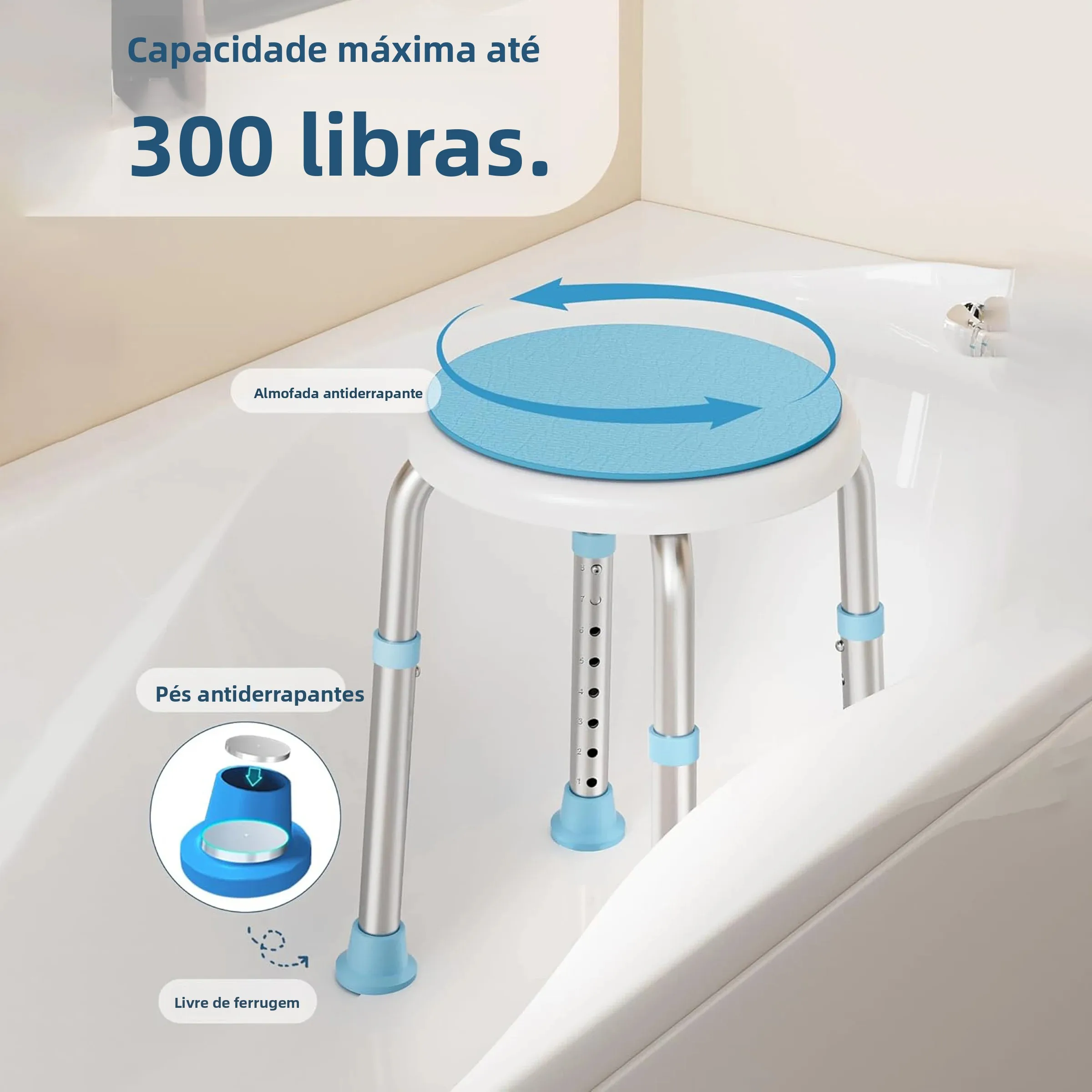 360 ° Tamborete redondo giratório do chuveiro do banho com cadeira giratória do elevador da banheira do assento - TopDealBox
