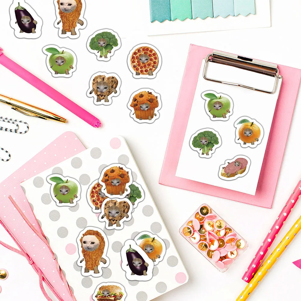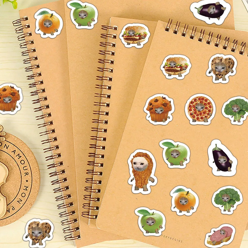 500 pçs criativo popular comida gato cabeça rolo adesivos padrão material de contabilidade adesivo à prova dwaterproof água adesivos de vedação - TopDealBox