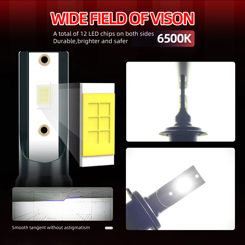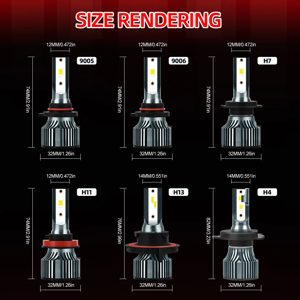 9005/HB3 9006/HB4 H7 H11 H13 H4 Faróis LED para carro 26000LM 6500K Super Brightness 400M Faixa de raios 2 peças - TopDealBox