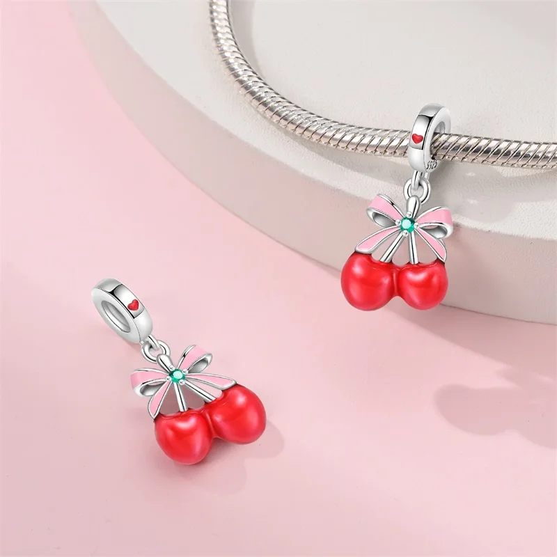 925 prata esterlina cereja morango maçã melancia encantos contas caber pandach pulseiras originais diy aniversário jóias fazendo - TopDealBox