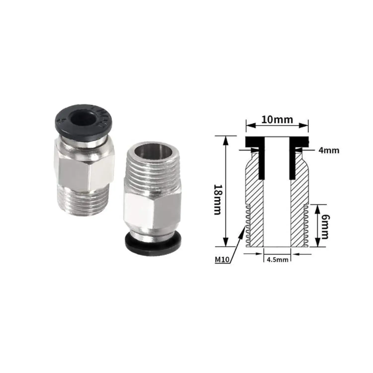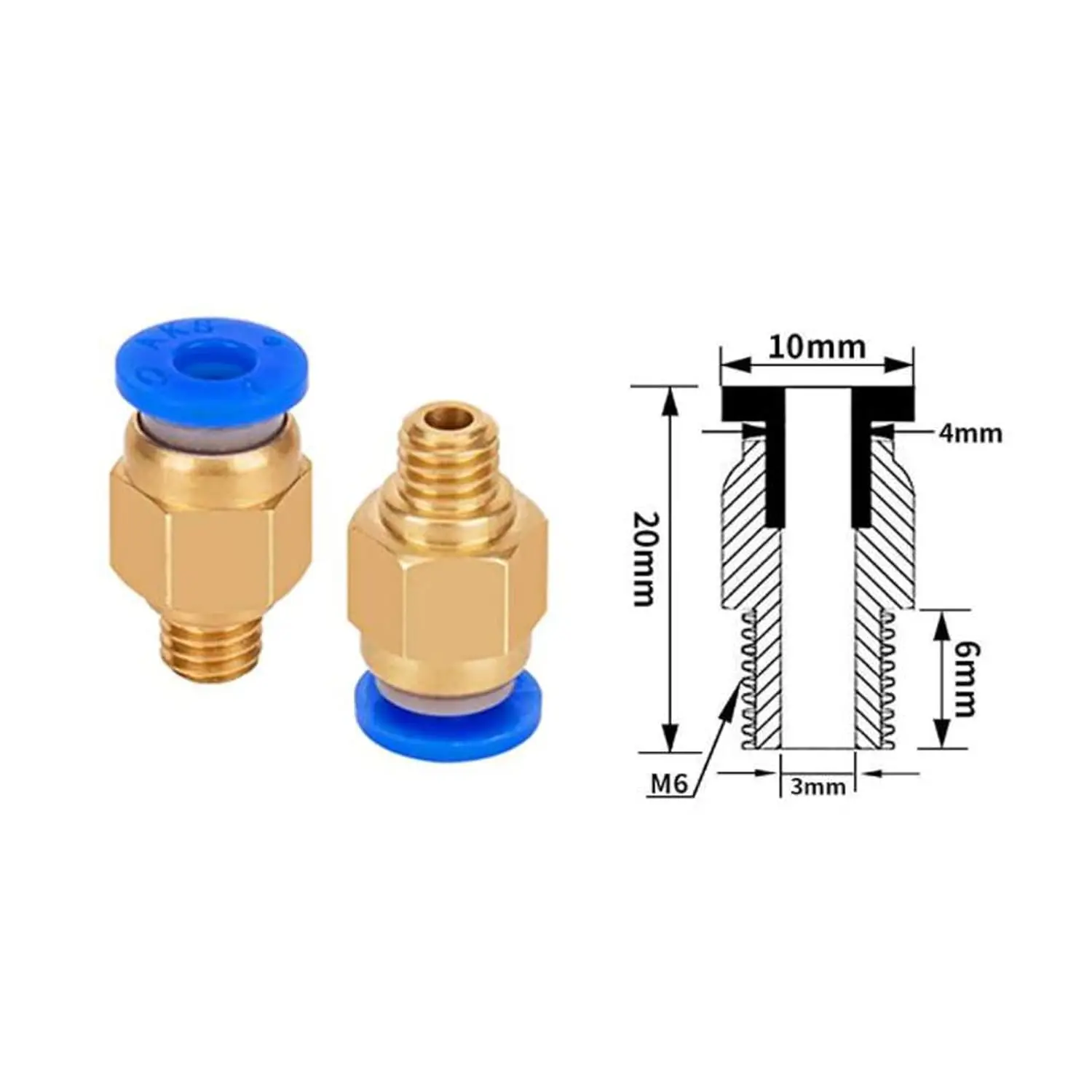 Acessórios de conector pneumático PC4-M6/M10 Acoplador de tubo Bowden Tubo de PTFE para diâmetro externo 4 mm Tubo de nylon, impressoras 3D - TopDealBox