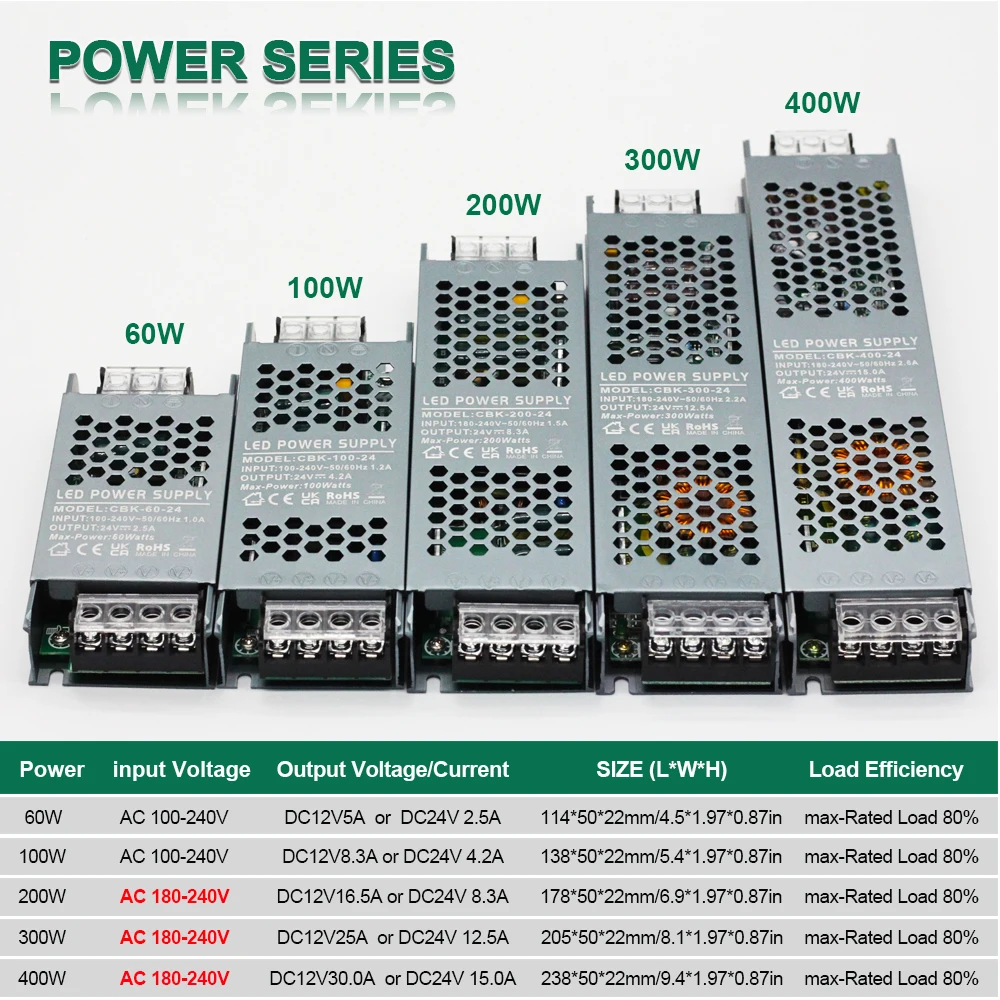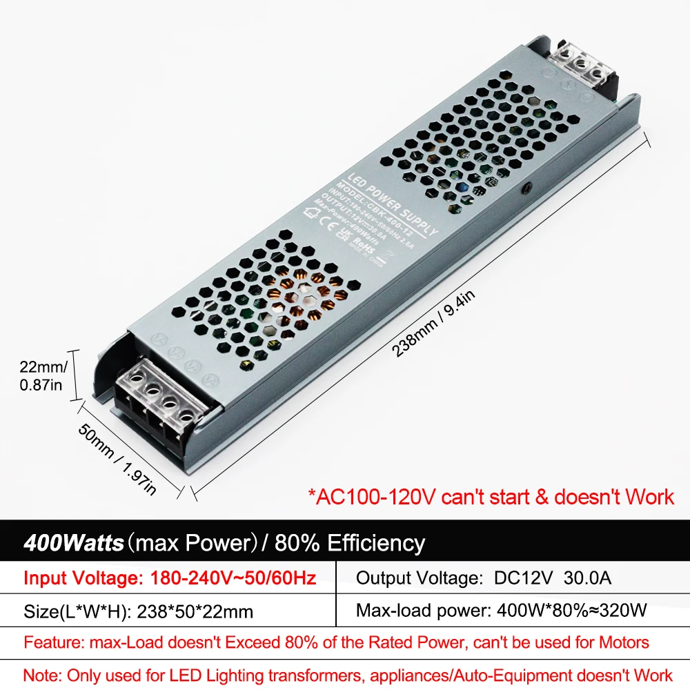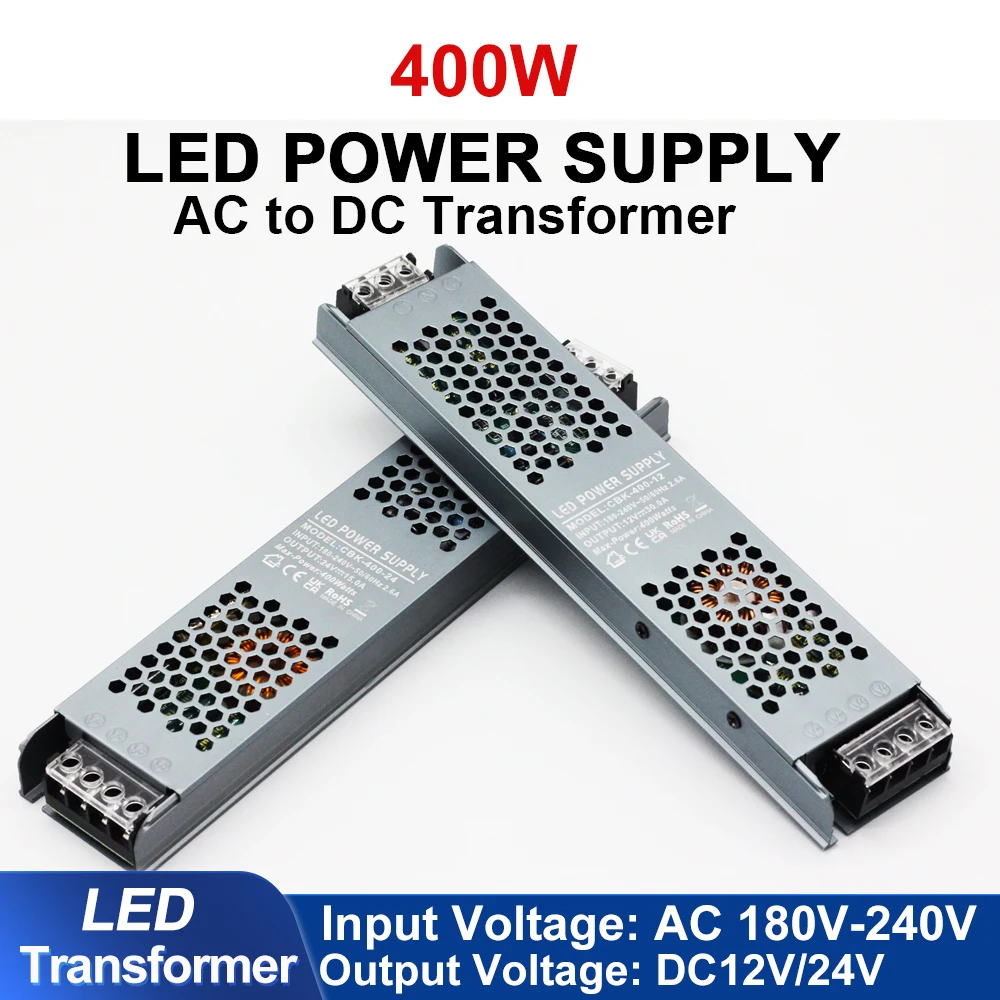 Adaptador de alimentação led silencioso ultrafino ac 180v-240v 400w dc 12v/24v transformador de iluminação led adequado para barras de luz led/tela - TopDealBox
