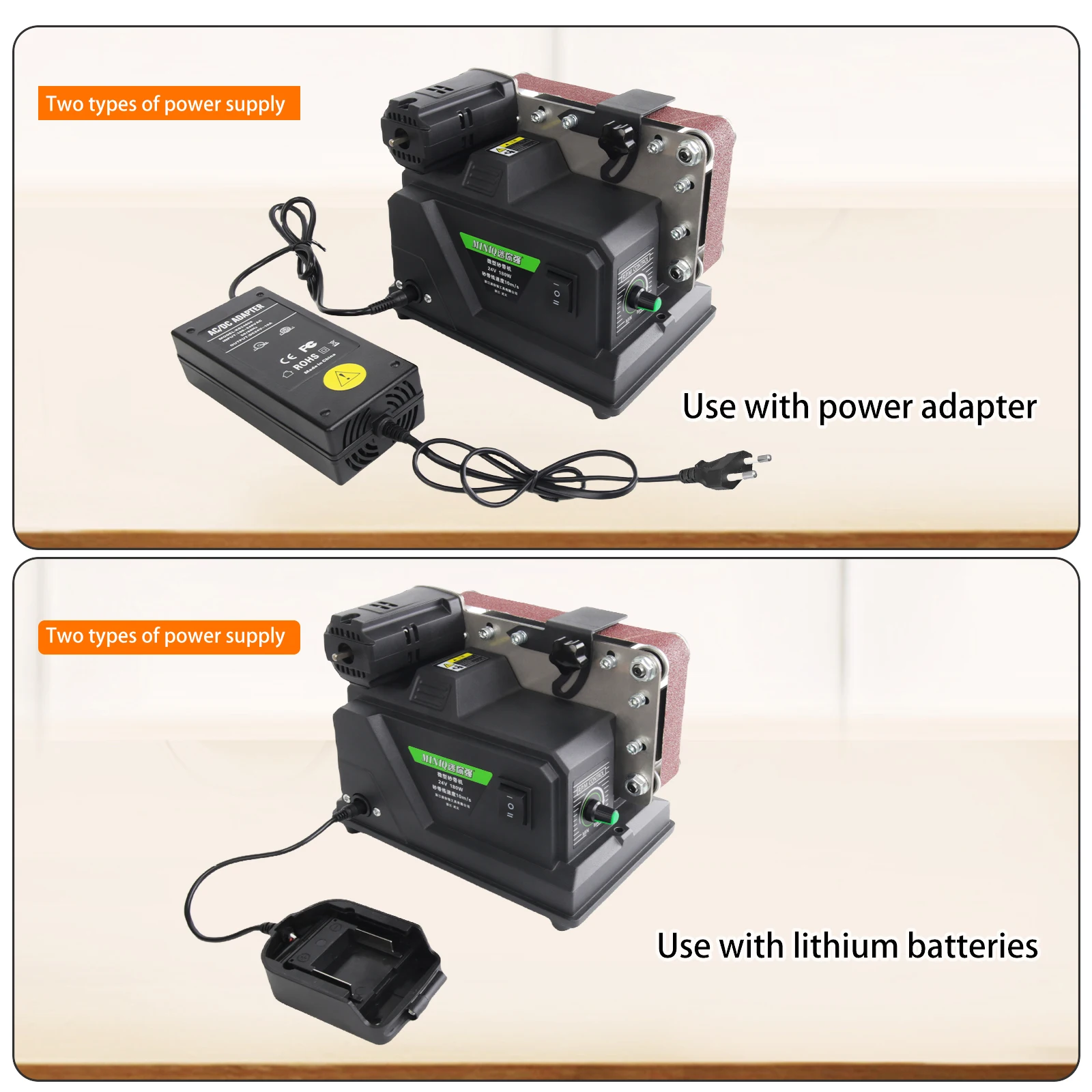 Allsome mini lixadeira de correia, lixadeira elétrica de 180 W com 10 peças de correias de lixa de 533 * 30 mm, adequada para bateria Makita 18V - TopDealBox