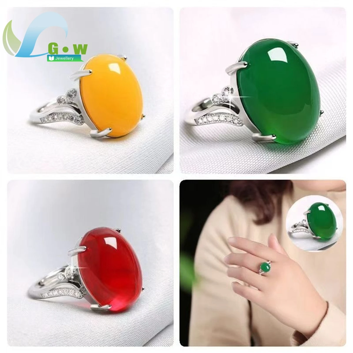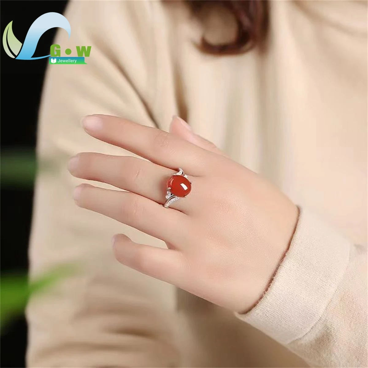 Anel de jade ágata vermelha para mulheres, ajustável, estilo simples, abertura, prata esterlina, joias finas, presente para mamãe, fêmea - TopDealBox