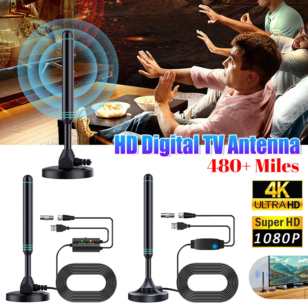 Antena de tv digital hd 4k/1080p com amplificador de sinal 480 + milhas antena interna externa base magnética vhf uhf digital hd aérea - TopDealBox
