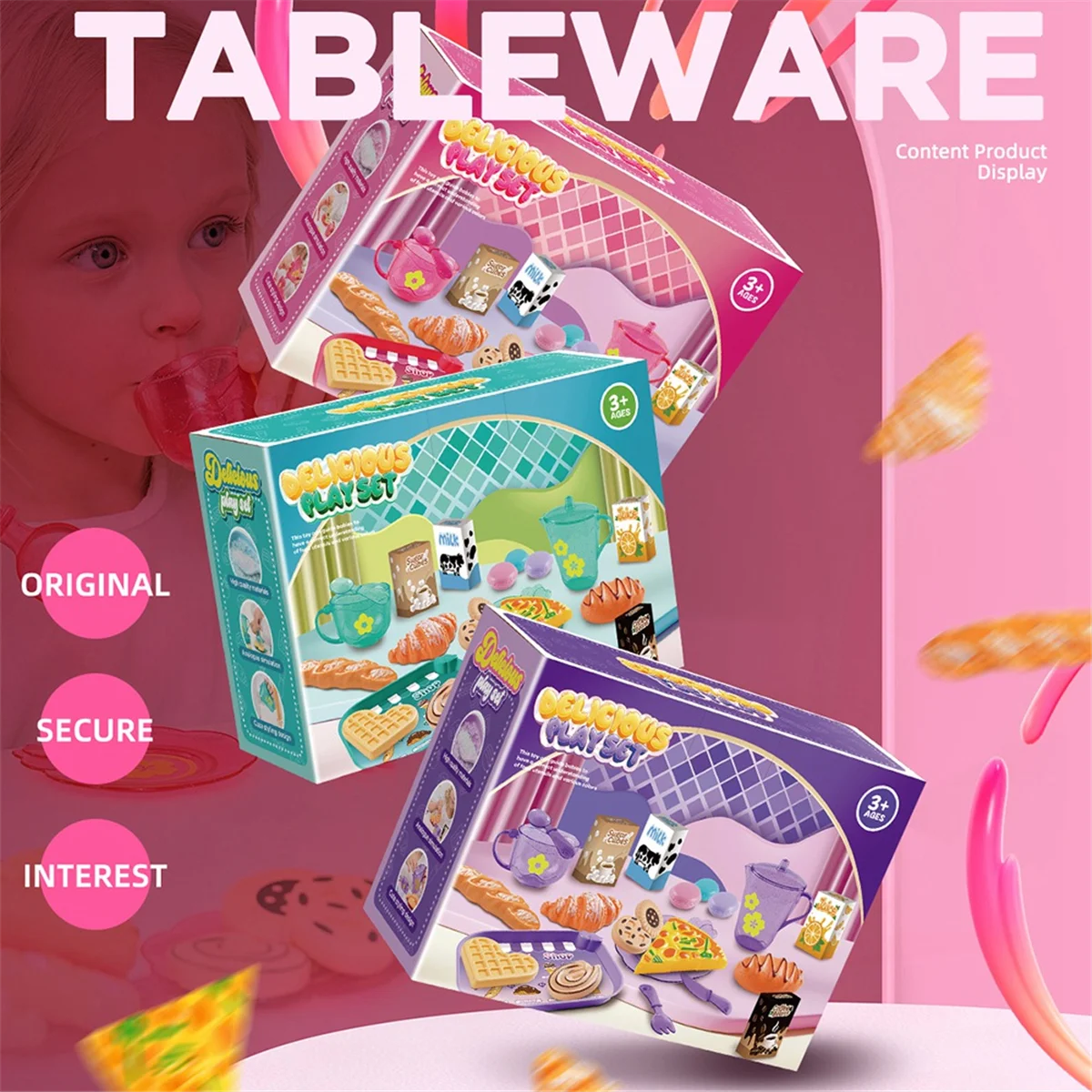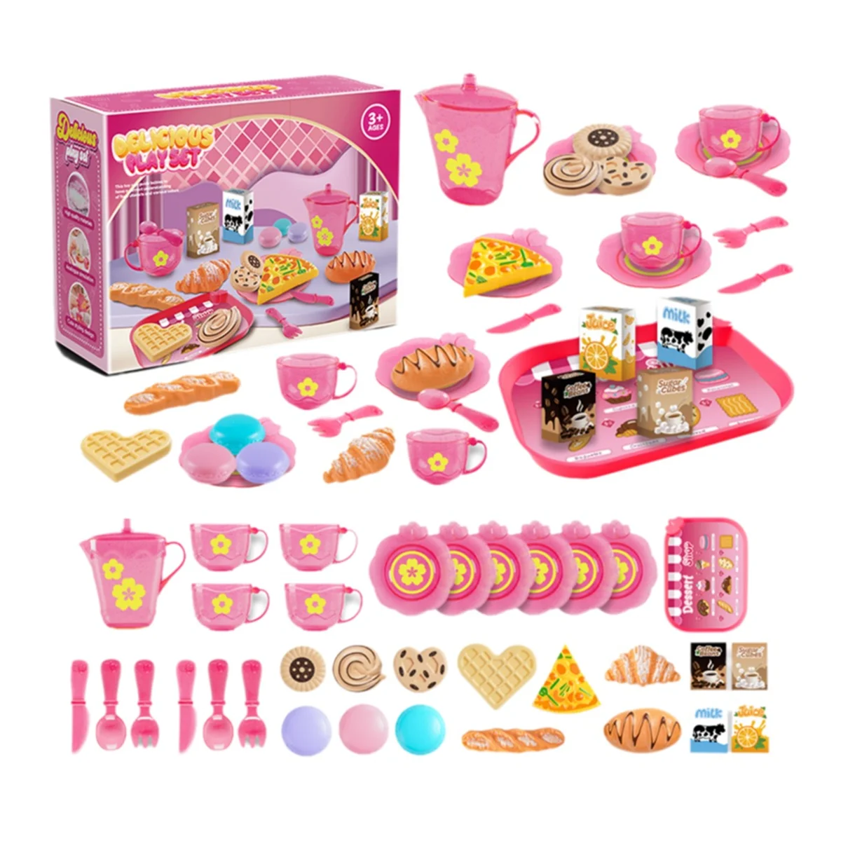 BAAU 33 peças conjunto de brinquedos de cozinha para casa de brincar infantil conjunto de chá para crianças, brinquedo de dramatização com sobremesa e talheres rosa - TopDealBox