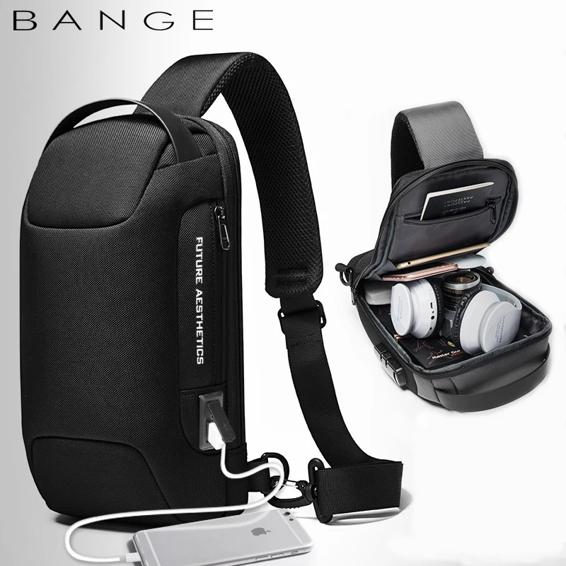 Bange bolsa crossbody para homens, portátil, à prova d'água, bolsa mensageiro de ombro, viagem curta, bolsa de peito adequada para ipad de 9.7 espaços - TopDealBox