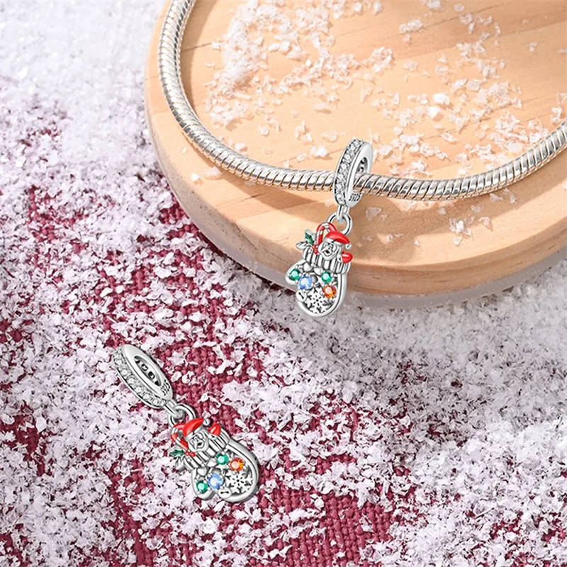 Encantos de natal criativo papai noel árvore de natal meias vermelhas botas 925 contas de prata esterlina diy pulseiras jóias para mulher - TopDealBox