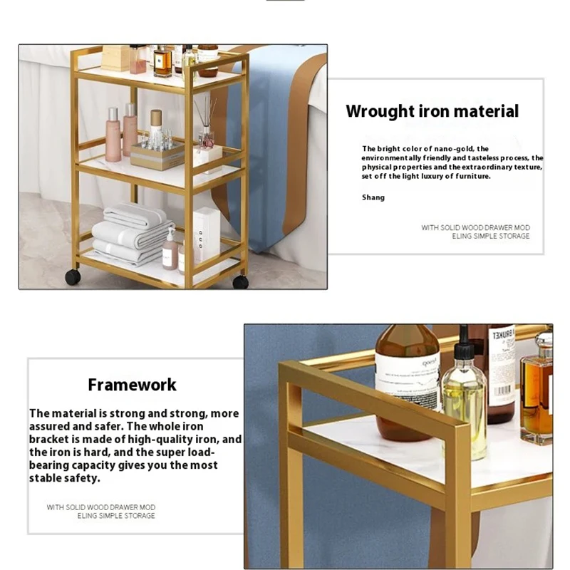 Carrinho de salão de beleza, suporte para manicure, cabeleireiro, rolos, organizador, rodas, móveis, cabeleireiro, armazenamento auxiliar, carro, spa Quick view