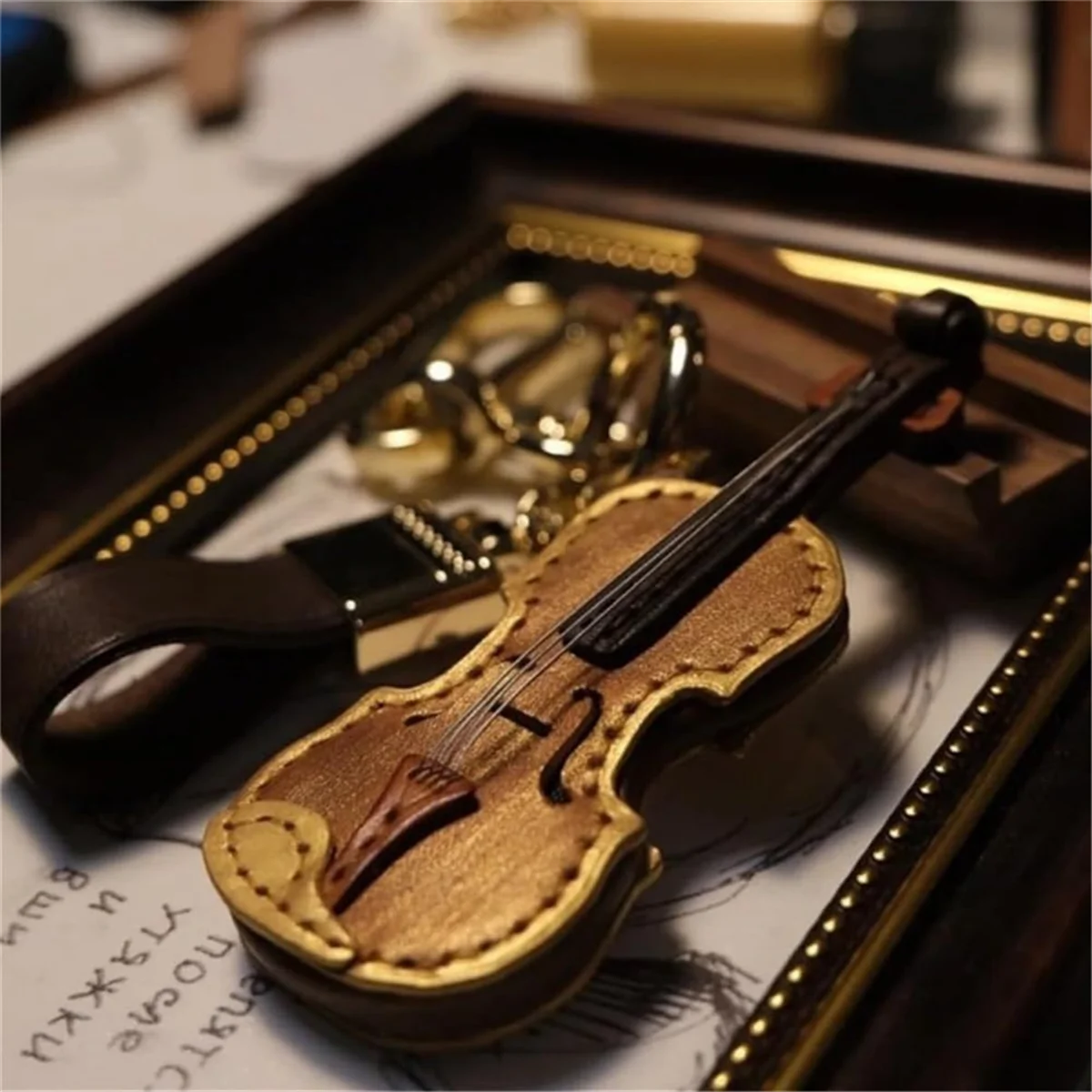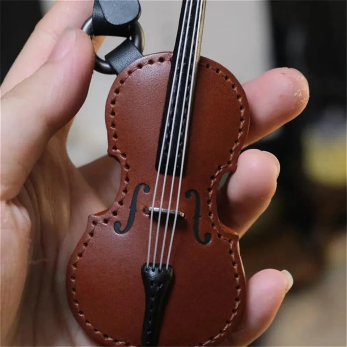 Chaveiro de couro para violino e violoncelo A71P Mini chaveiro para instrumento musical Chaveiro de violino de couro vintage cáqui - TopDealBox