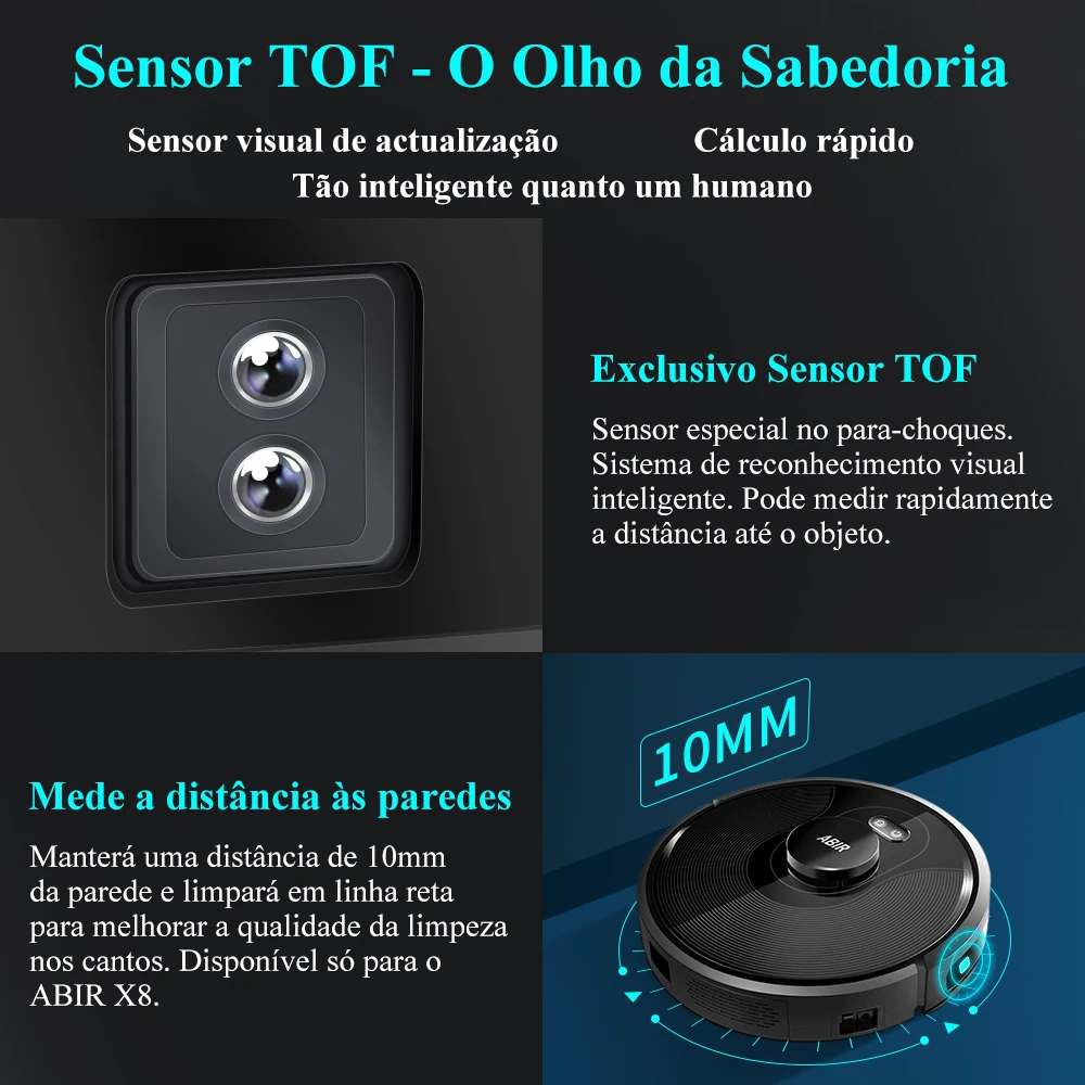 ♡Quick view(Código promocional: BR2025)Robô aspirador de pó ABIR X8, navegação a laser lidar, 6500pa sucção, multi-assoalho mapa, Esterilização UV, y forma molhado esfregar, app zonas não-go, Exclusivo Sensor TOF1340.45 BRLHot★★★★★★4.8
