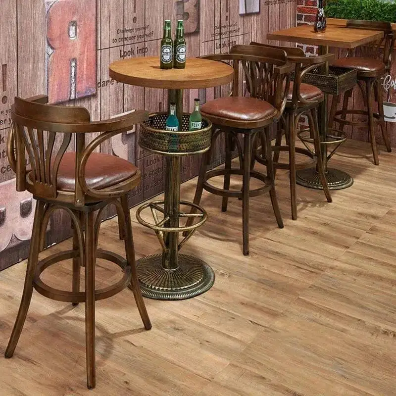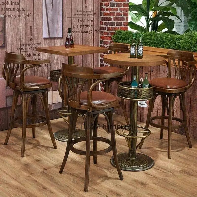 Criativo americano claro retro sólido poltronas barra de madeira cadeiras simples casa restaurante café alta giratória casa bancos de barra móveis - TopDealBox