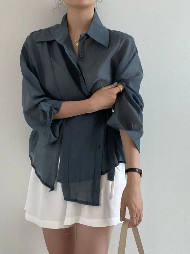 ♡Quick viewVerão protetor solar camisa elegante perspectiva fina chiffon blusa coreano harajuku ver através solto topo casual cardigan feminino40.99 BRLBRL 102.68Hot★★★★★4.4