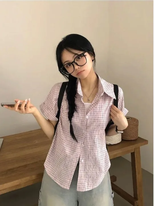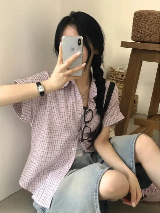 ♡Quick viewCsa xadrez azul solta estilo preguiçoso versão coreana fena gola manga crida csa mistura de aodão moda verão57.69 BRLHot★★★★★★4.7