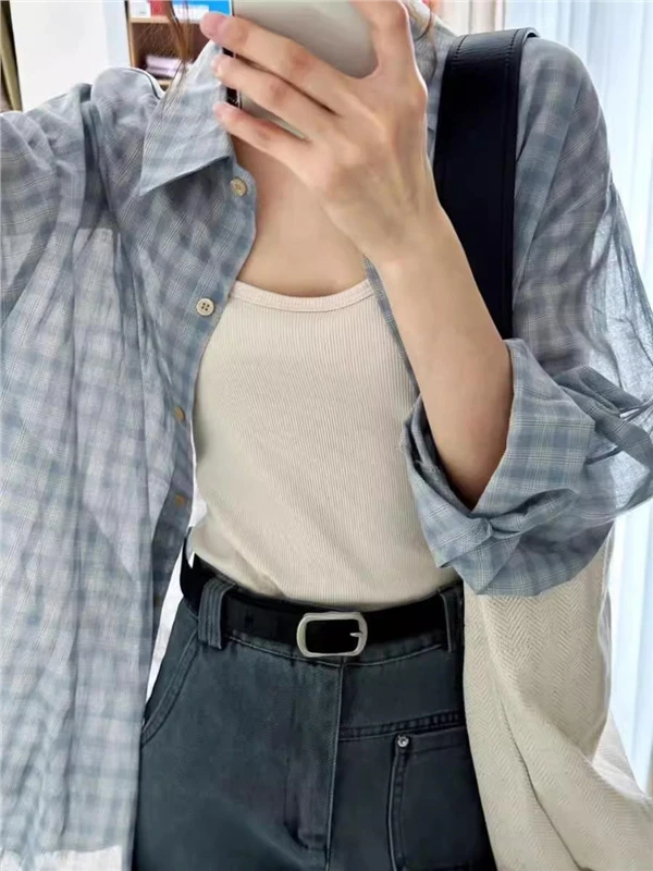 ♡Quick viewCsa Fena Xadrez Azul Fina Respirável Manga Longa Estilo Verão Casual E Design Coreano Solto Poliéster41.39 BRLHot★★★★★3.4