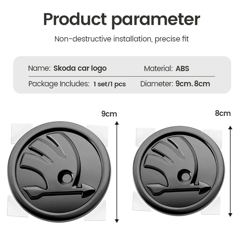 Emblema abs de 80mm 90mm, para skoda fabia 1 2 octavia a7 rs superb rapid yeti karoq vision, cabeça de carro, bota dianteira e traseira, adesivo de porta traseira - TopDealBox