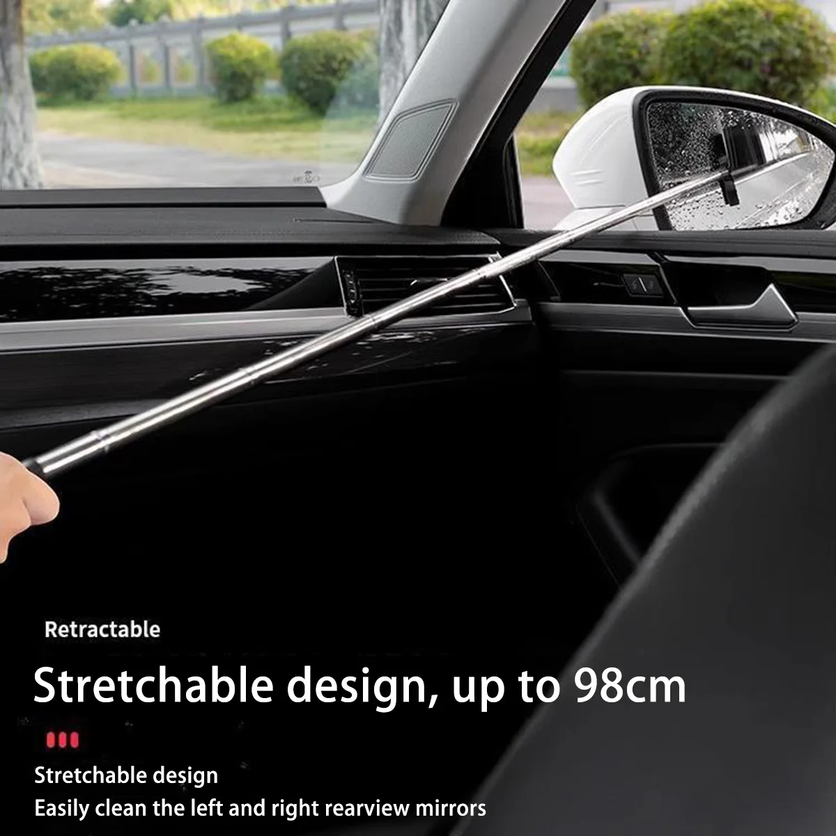 Espelho retrovisor do carro limpador telescópico lidar com espelho retrovisor do carro limpador durável inoxidável ferramentas de limpeza de vidro automático escova de limpeza - TopDealBox