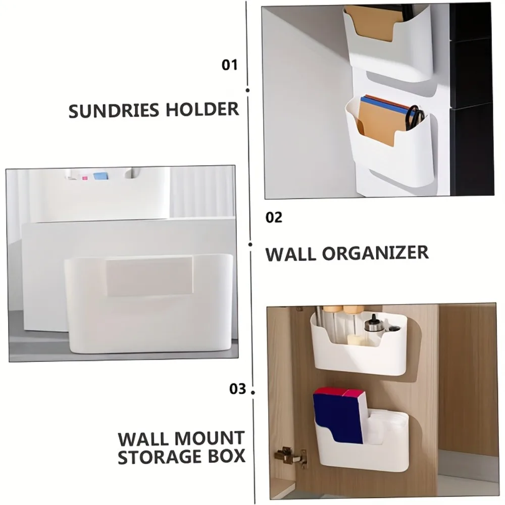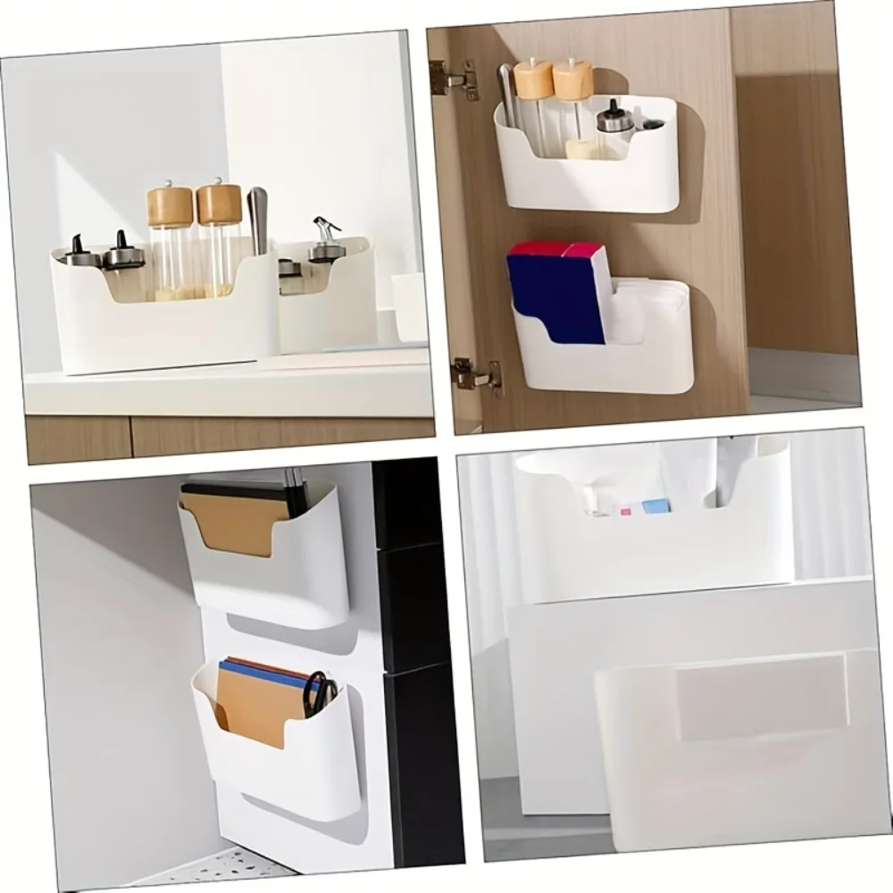 1pc caixas de armazenamento de plástico montadas na parede sem perfuração para cozinha, banheiro, escritório-organizador de porta de armário para suprimentos domésticos - TopDealBox