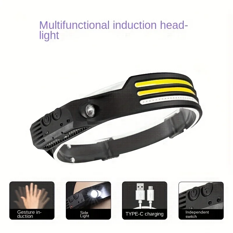 Farol led recarregável cob super brilhante luzes de cabeça 5 modos capacete luzes sensor movimento para acampamento ao ar livre esportes pesca - TopDealBox