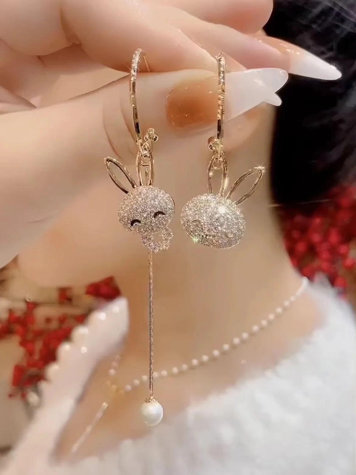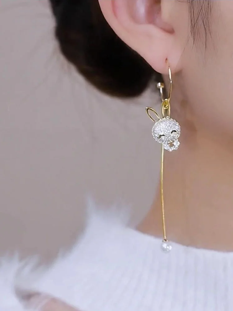 IA BEAR925 Brincos fs de prata pura assimétrica com orelha de coelho versátil e joias de prata da moda - TopDealBox