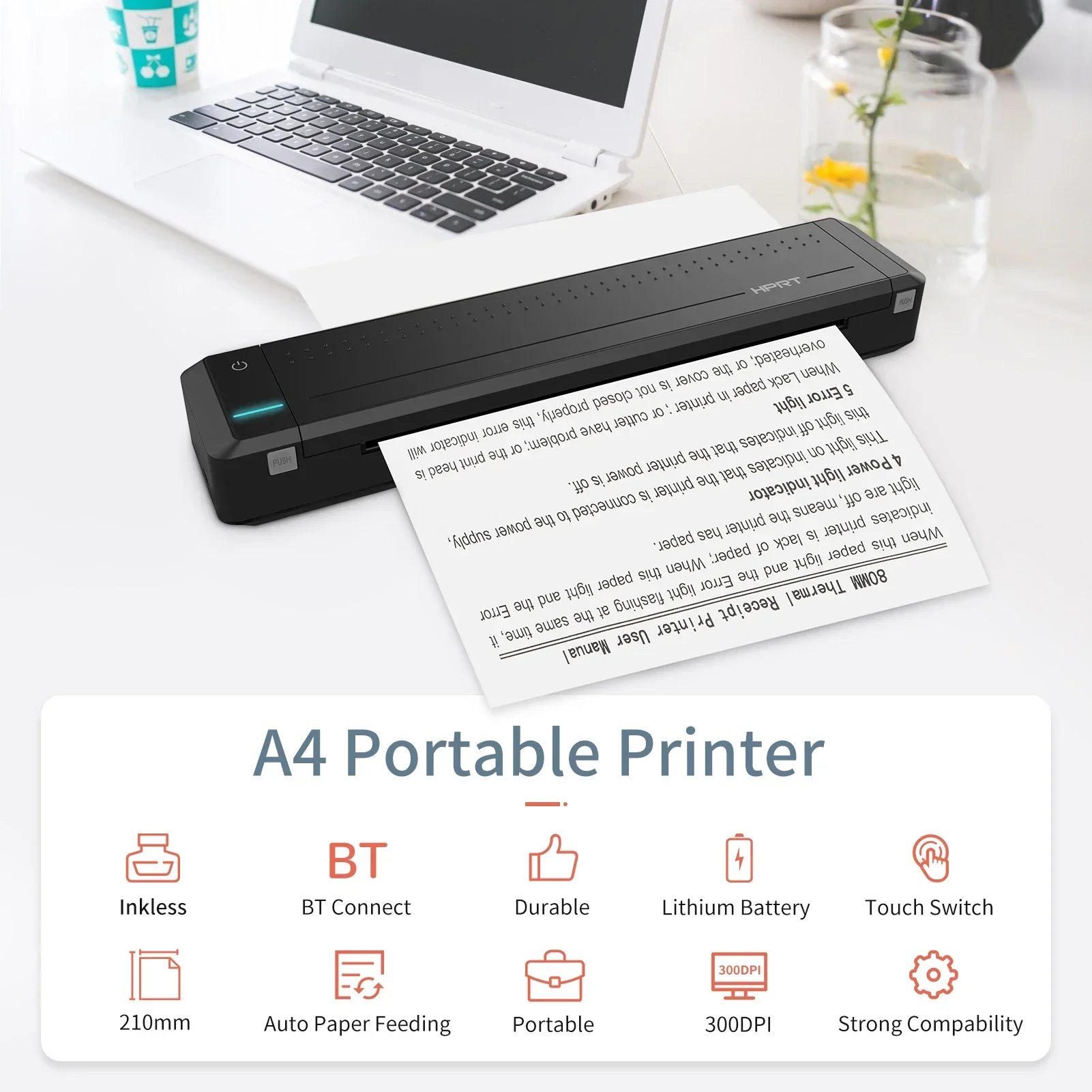 Impressora de transferência térmica portátil HPRT MT800 A4 300DPI sem fio e conexão USB computador móvel para escritório escola com rolo de fita B - TopDealBox