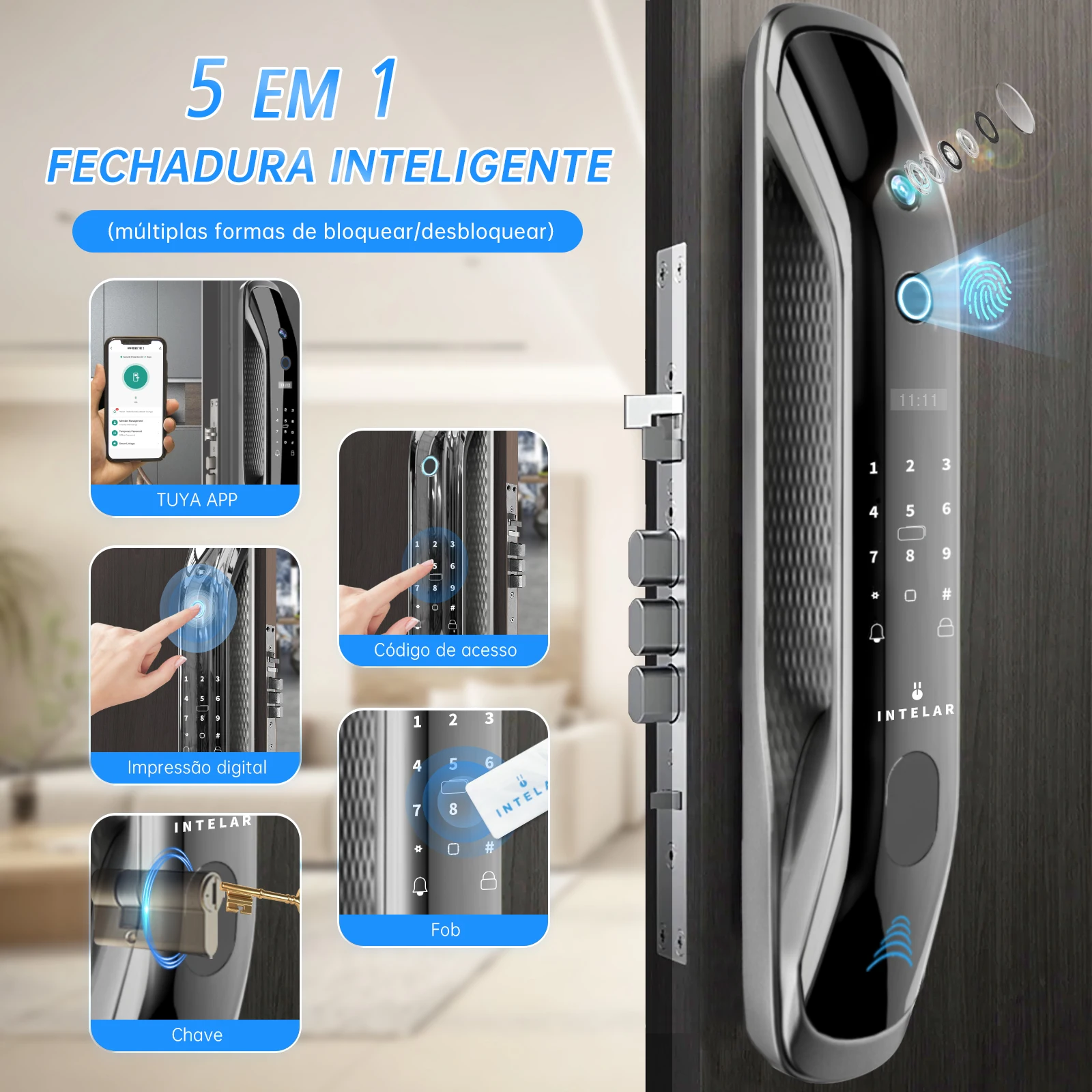 ♡Quick viewIntelar X5 Do Brasil Tuya Wifi Fechadura eletrônica digital inteligente Fechadura de impressão digital para casa Fechadura com senha de impressão digital378.52 BRLHot★★★★★★4.8