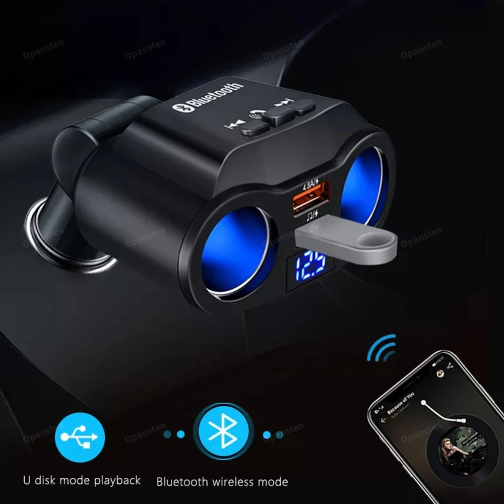 Isqueiro do carro divisor carregador duplo usb qc 3.0 carga rápida 12v auto transmissores fm bluetooth soquetes de chamada mãos-livres - TopDealBox