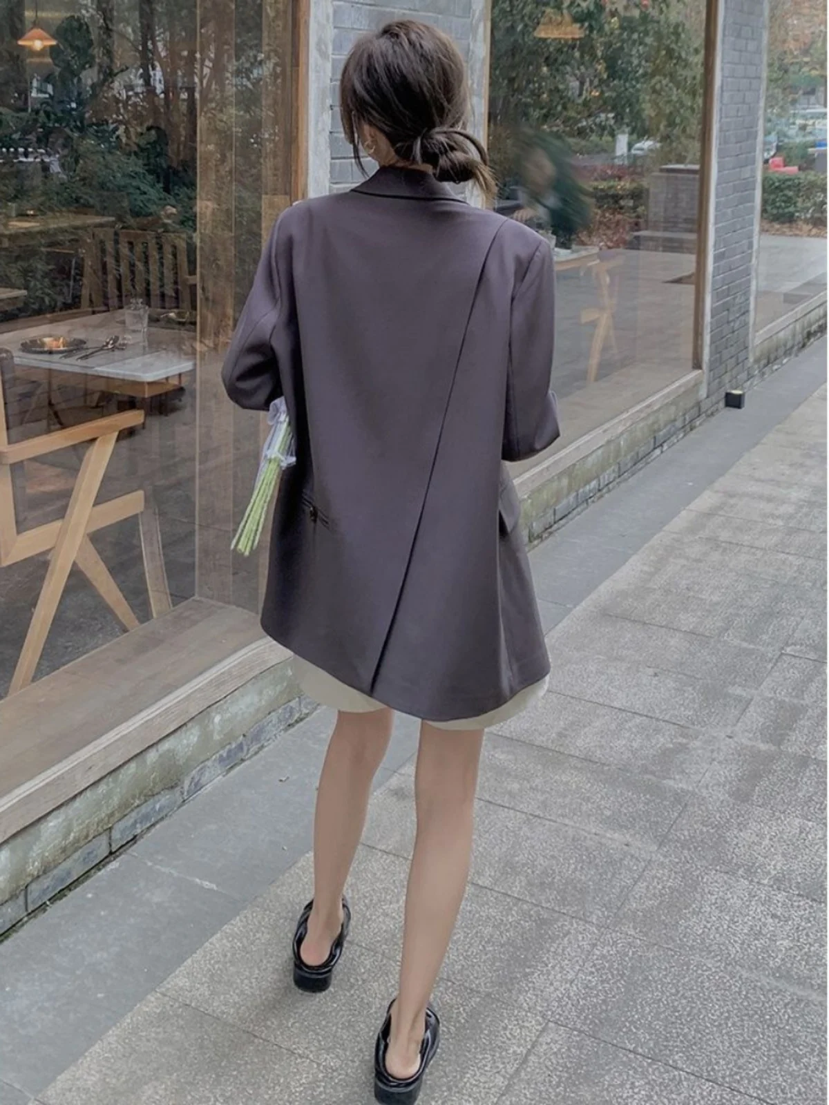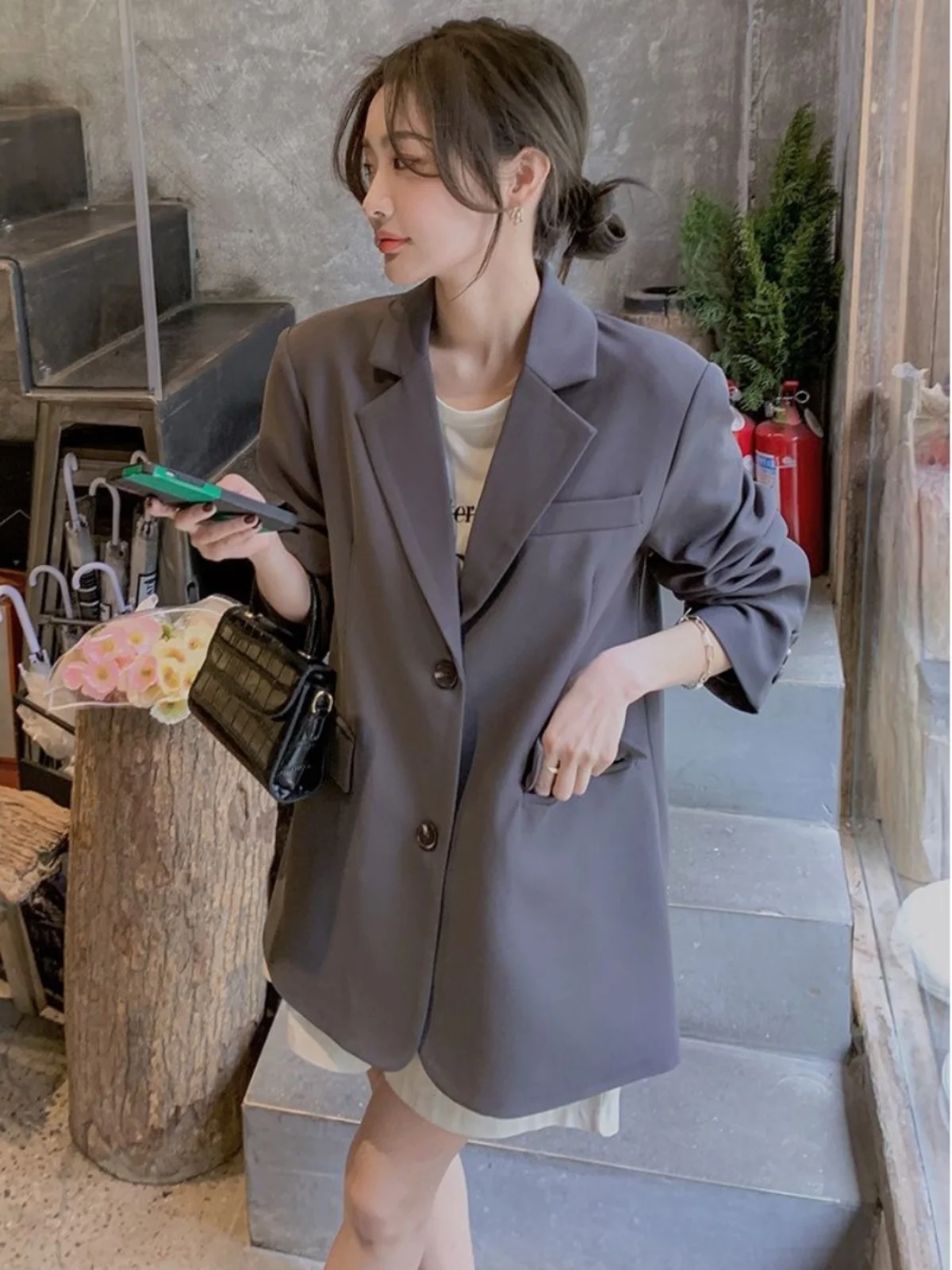 Jaqueta Casual Fena Cinza Chic Primavera 2025, Sensação de Alta Qualidade, Botão Único, Moda em Cor Pura - TopDealBox