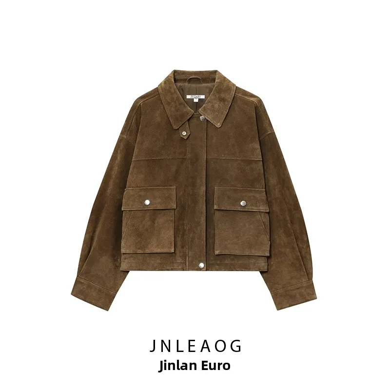 ↑Jaqueta de Couro Fena JNLEAOG Estilo Piloto Outono Novo Design Solto em Fibra de Poliéster 00% Crimento Regular - TopDealBoxJaqueta de couro real feminina, casaco de pele de carneiro, corta-vento, clássico, clarete, lapela grande, ombro largo, ultracurto, luxo, designer, outono