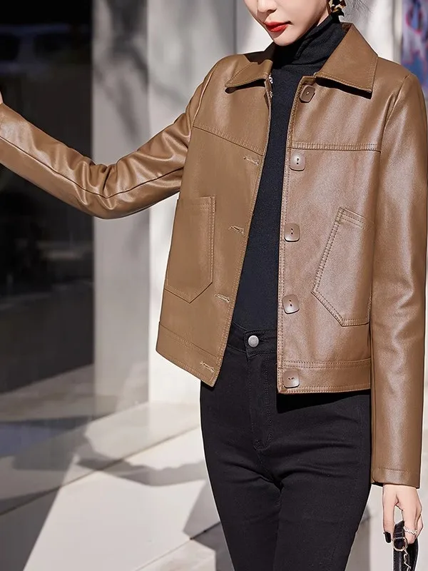 ♡Quick viewCouro genuíno das mulheres curto fino pele de carneiro 2025 primavera outono jaqueta de couro nova manga longa terno colarinho zíper pequeno casaco215.40 BRLHot★★★★★4.0