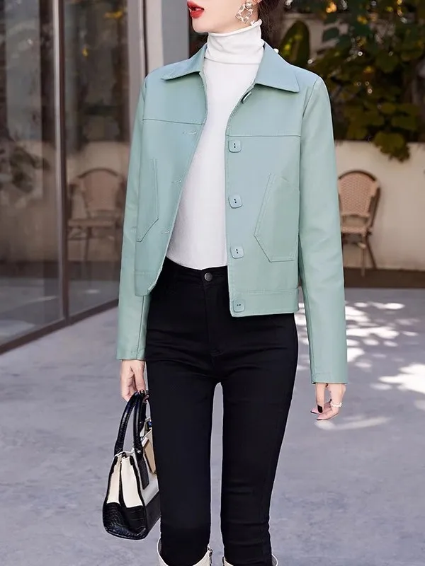 ♡Quick view2023 outono inverno jaqueta de pele carneiro feminino casaco curto fino inclinado zíper casual topos senhora pequeno outerwear casacos blazer de couro231.59 BRLHot★★★★★★4.7