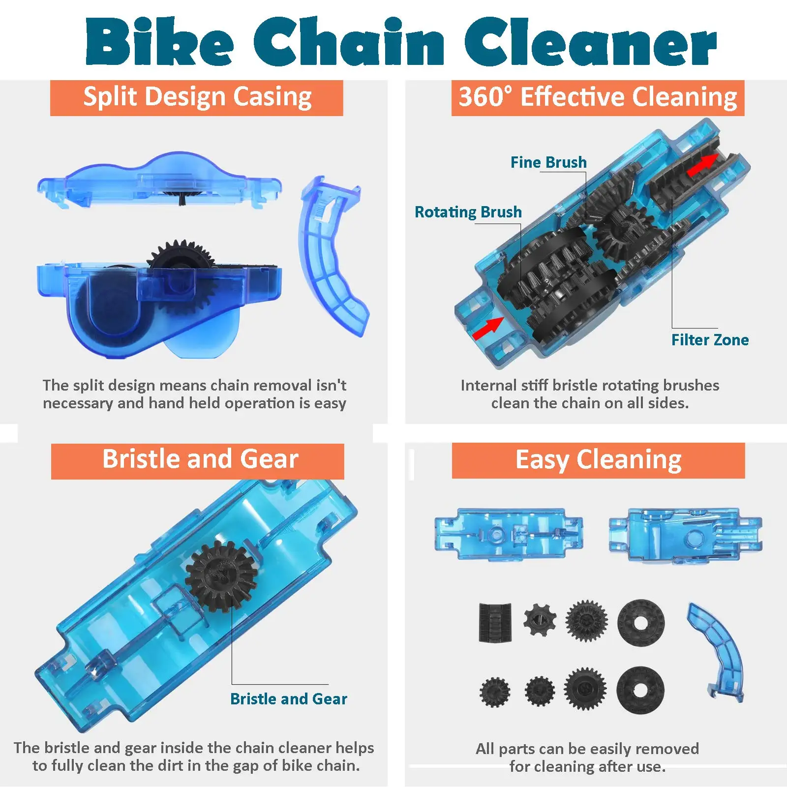 Kit de limpeza de corrente de bicicleta, correntes fáceis e de limpar rapidamente, escova de engrenagem, conjunto de ferramentas de limpeza de manutenção para bicicleta de estrada e montanha - TopDealBox