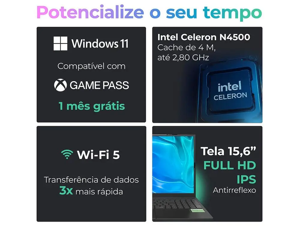 ♡Quick viewChuwi gemibook plus laptop 15.6 "gráficos intel n150/n100 para 12a geração 1920*1080p 16gb ram 512gb ssd com ventilador de refrigeração windows 111454.99 BRLHot★★★★★★4.7