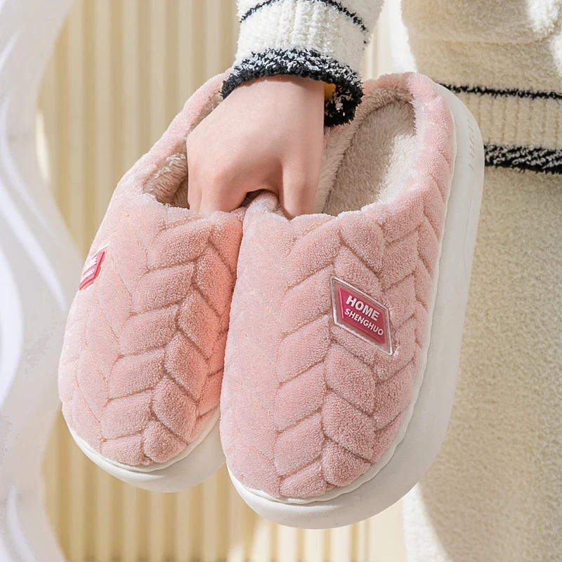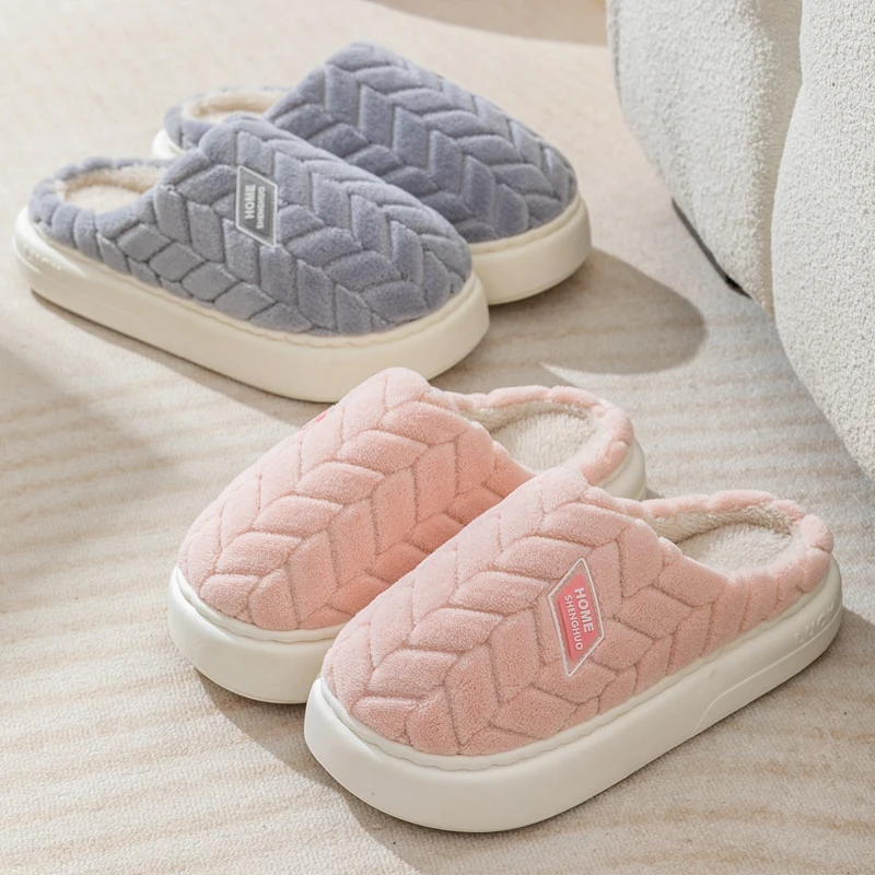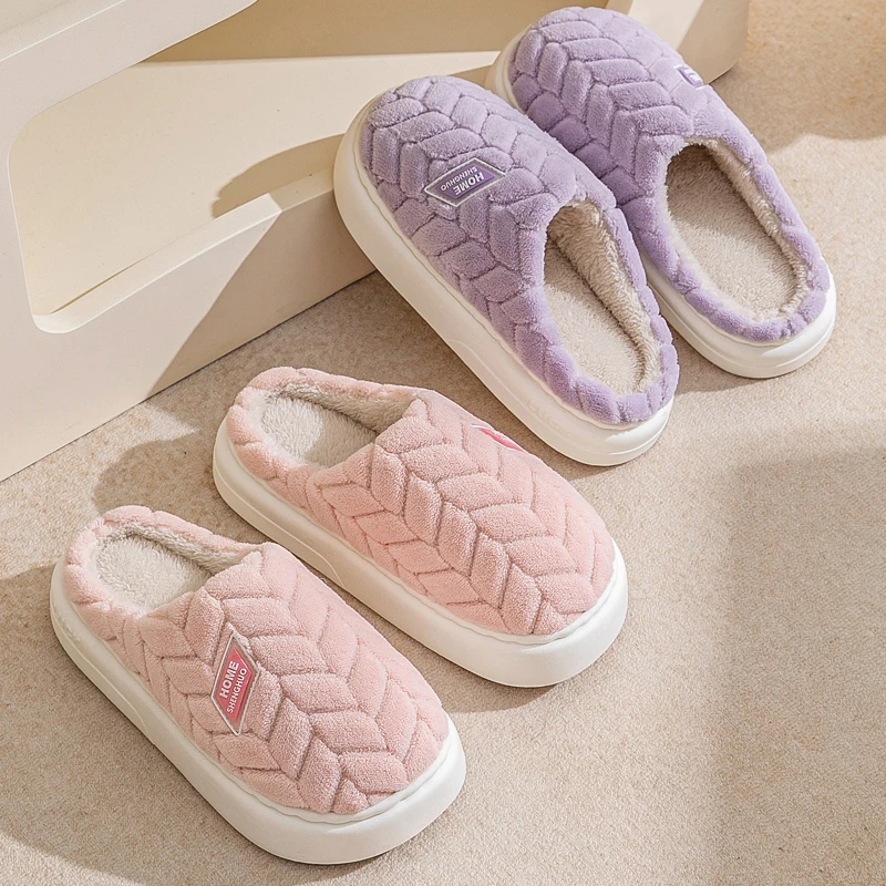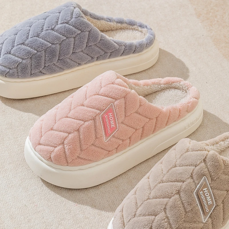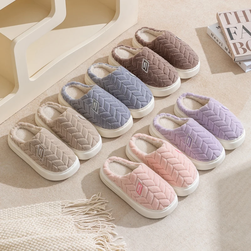 Nova moda concisa casal inverno toe envoltório quente chinelos macios antiderrapantes slides para mulheres homens indoor plana casa sapatos de algodão - TopDealBox