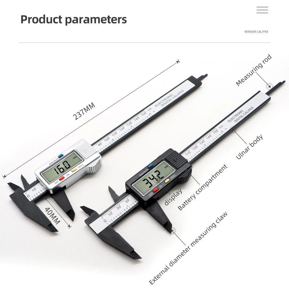 Paquímetro digital vernier, 150mm, lcd, eletrônico, fibra de carbono, 0.1mm, micrômetro, régua digital, ferramenta de medição de profundidade de altura - TopDealBox