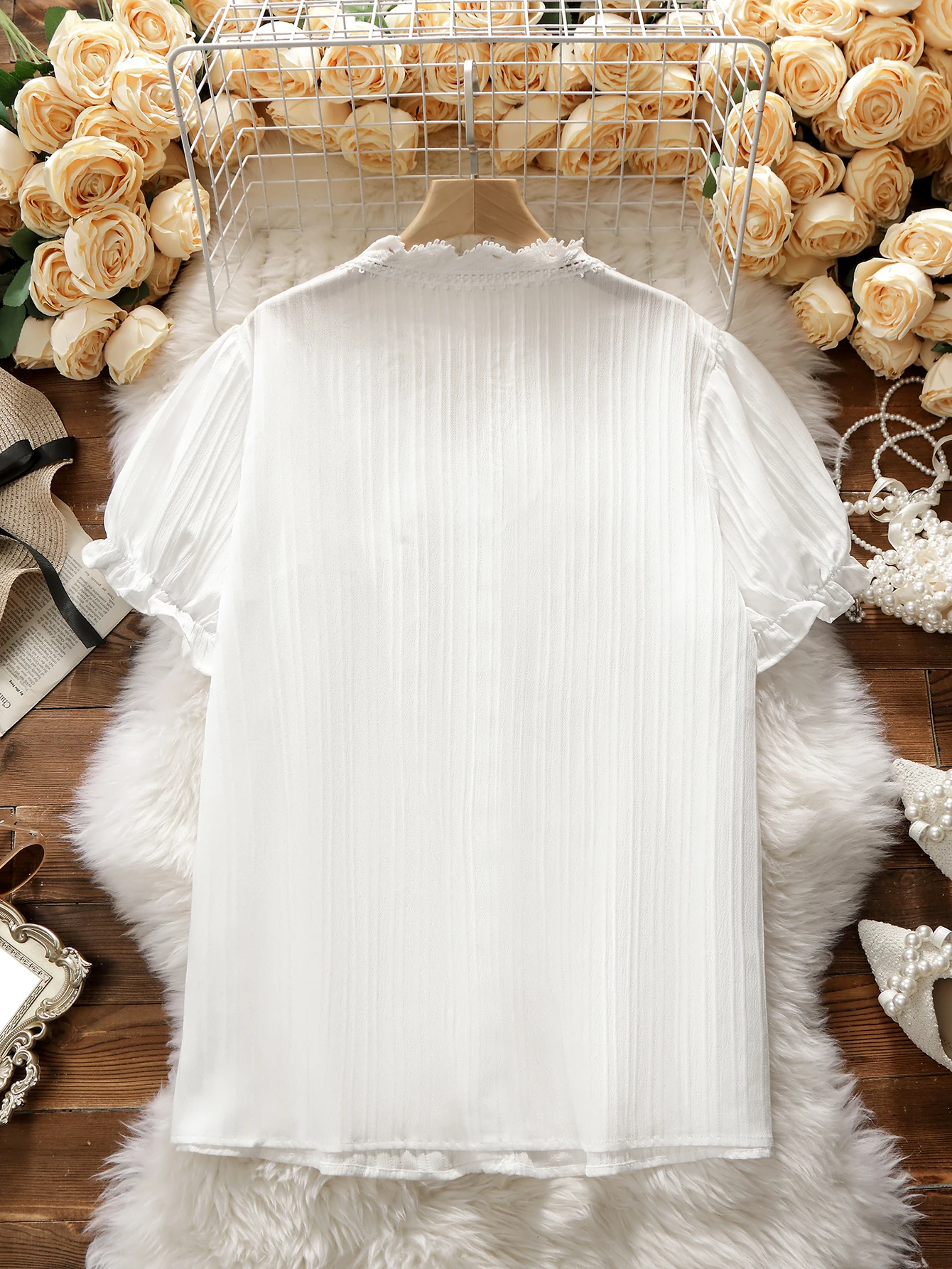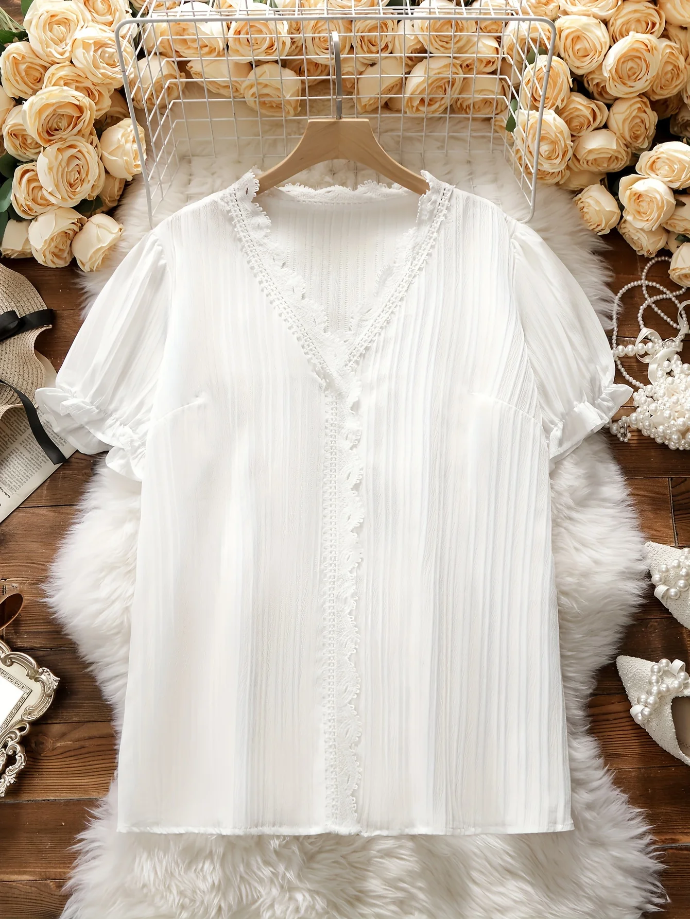 ↑ Plus size feminino verão com decote em v poliéster elástico com renda intelectual e elegante abotoado moda commuter topo de manga curta - TopDealBoxVONDA-Vestido de verão floral estampado feminino, vestido midi, 3/4 de manga com taco, casual, solto, retrô, boêmio, elegante, plus size, 5XL, outono, 2020
