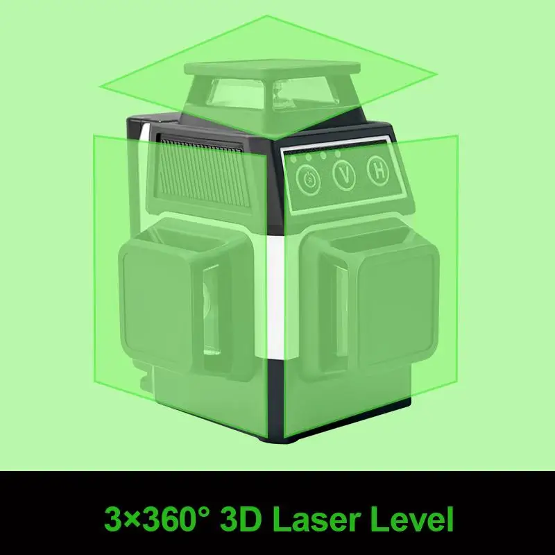 Pracmanu Mini Nível Laser 12 Linhas Nível 3D Autonivelante 360 ° Linhas de feixe de laser verde cruzado horizontal e vertical - TopDealBox