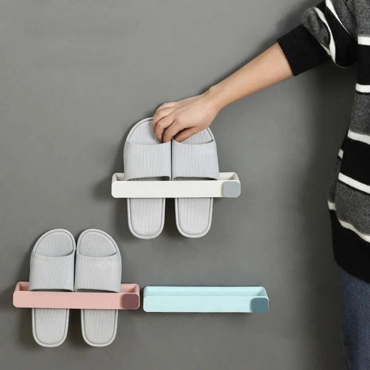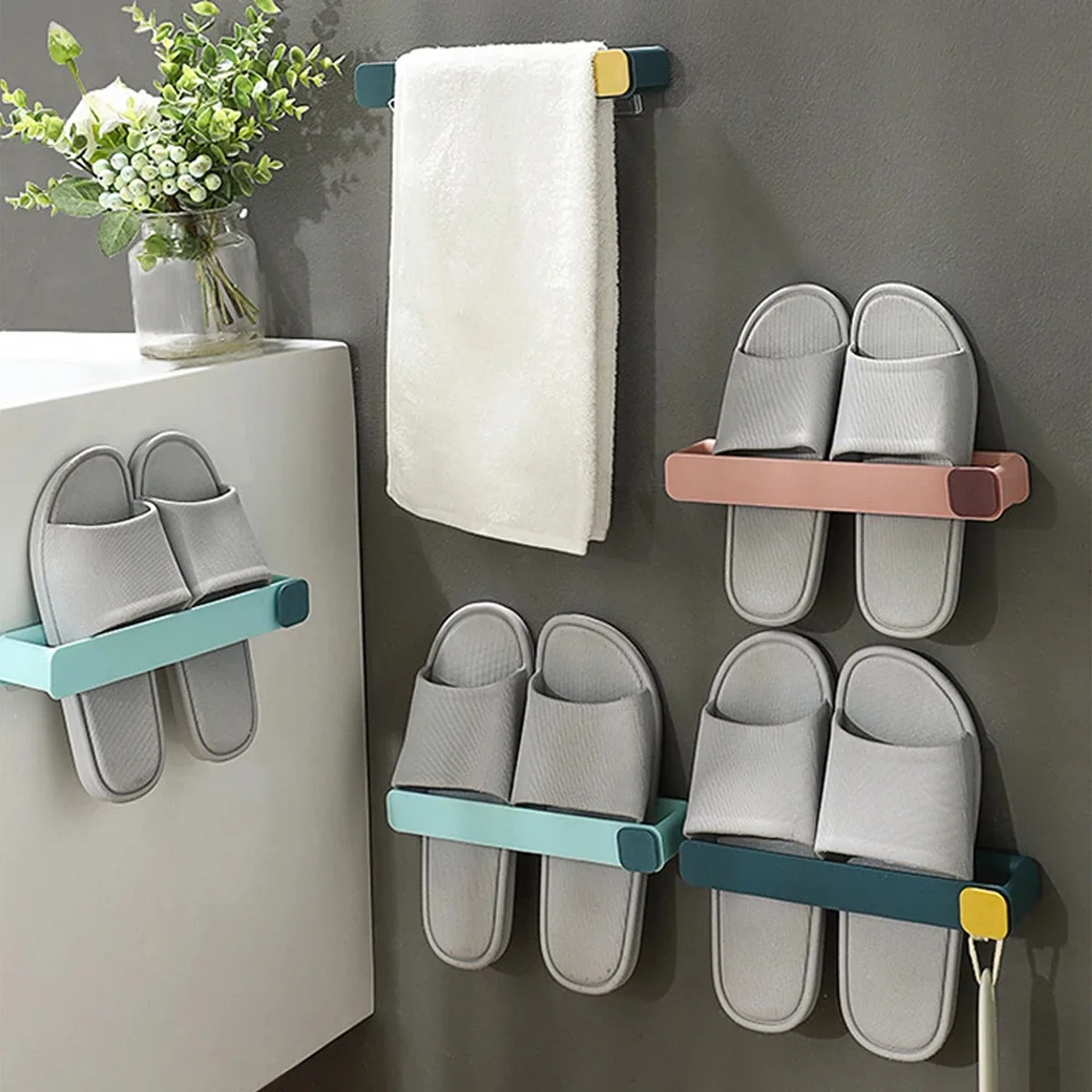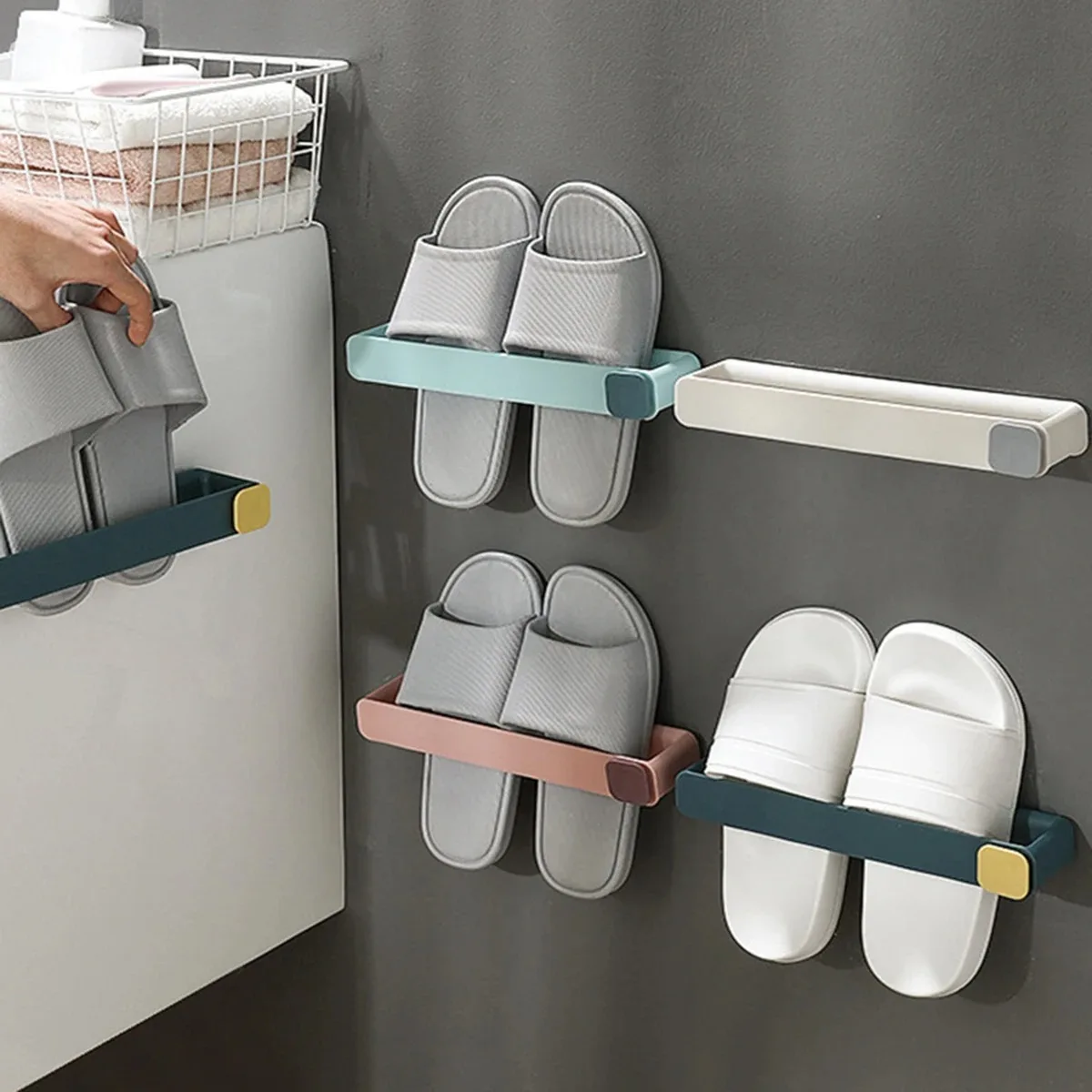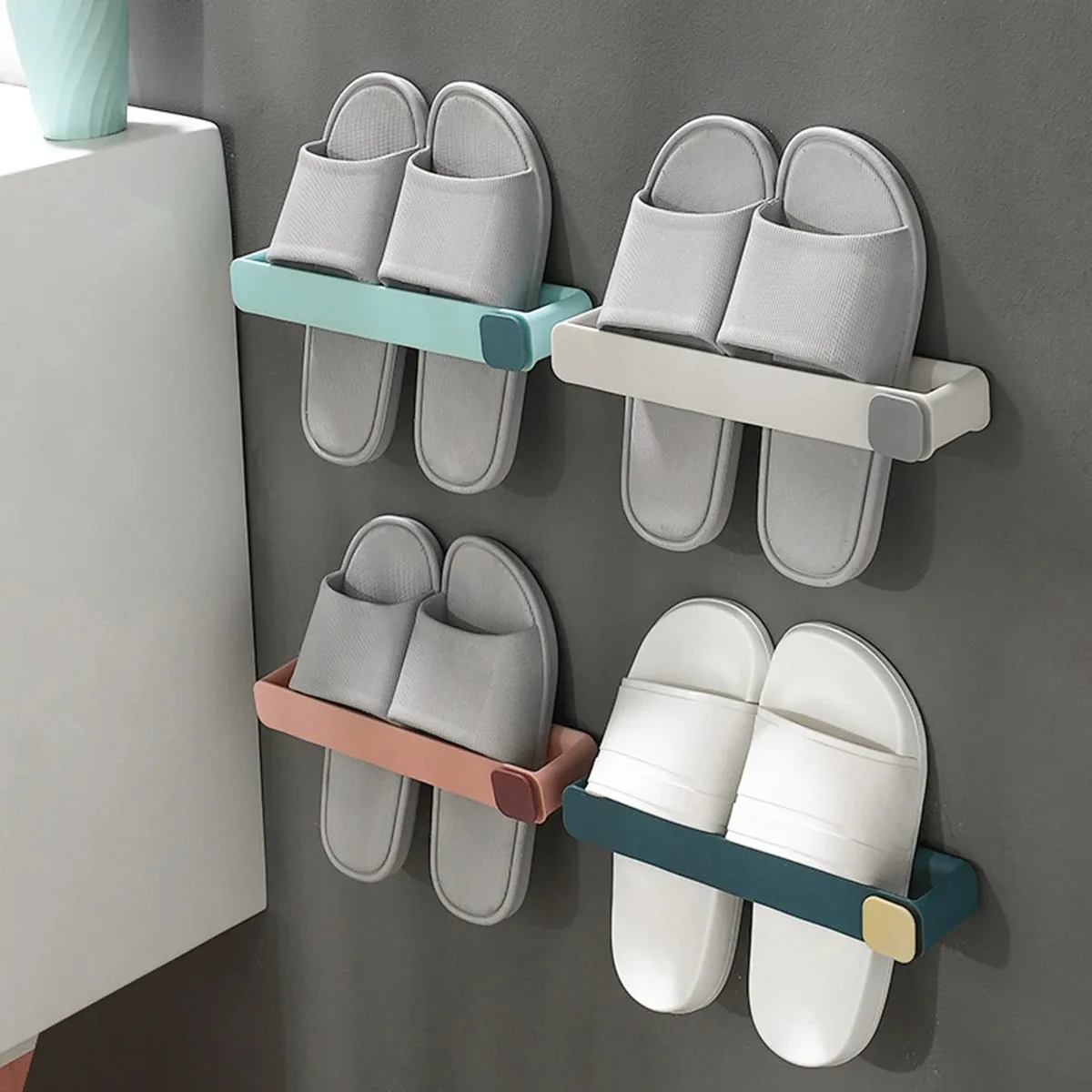 Prateleira de chinelo de banheiro montada na parede sem broca - Organizador de suspensão de sapateira para economia de espaço de 1 camada, instalação sem perfuração - TopDealBox