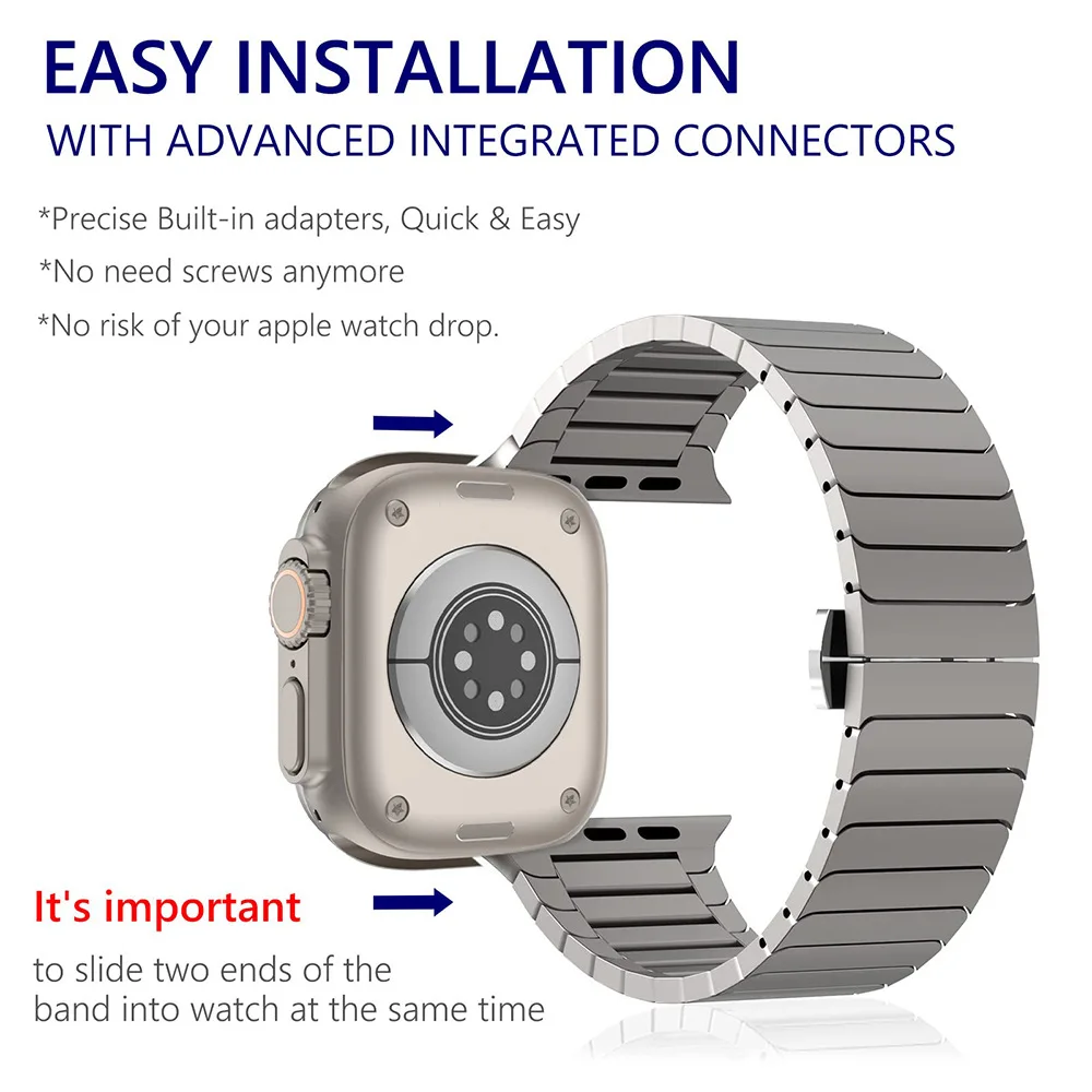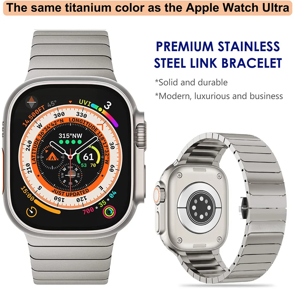 Pulseira de aço inoxidável sólido para apple watch série fivela borboleta uma conta pulseira de aço inoxidável de metal de luxo - TopDealBox