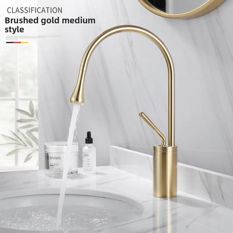 Torneira moderna para pia, ouro escovado, preto, prata, deck montado, torneira misturadora, quente e fria, latão para banheiro - TopDealBox