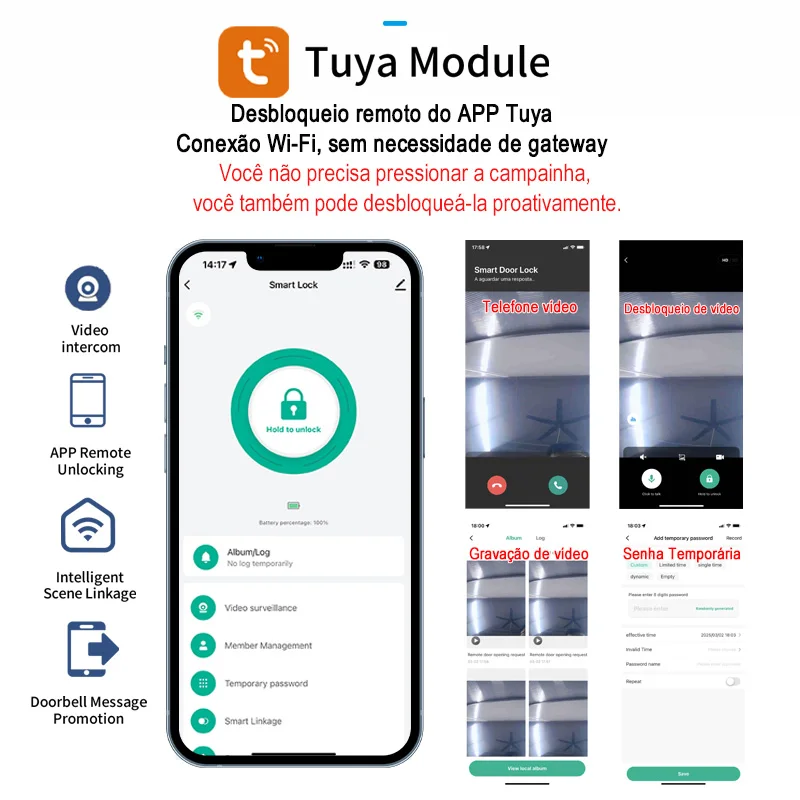 ♡Quick viewXsdts tuya wifi digital eletrônico inteligente fechadura da porta com câmera biométrica impressão digital cartão inteligente senha chave desbloqueio487.85 BRLHot★★★★★★4.6